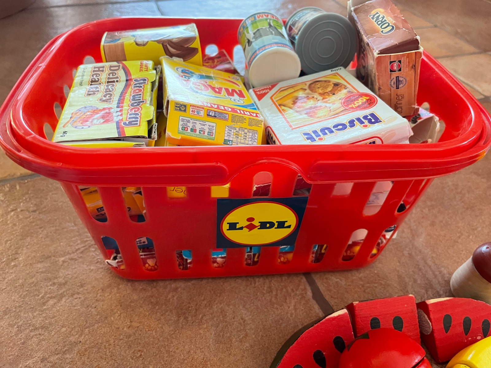 Papierové potraviny lidl kôš, niektoré sú potrhane, len všetko spolu, cena 5eur.