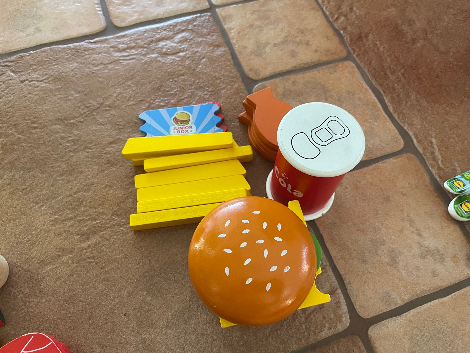 Drevený hamburger, hranolky, cola, Pekny hrany stav, cena 8eur. PREDANE.