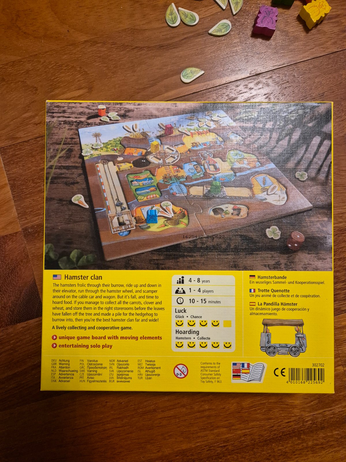 Kooperatívna spoločenská hra od firmy HABA pre deti od 4 rokov, kde hráči spolupracujú ako klan škrečkov, aby nazbierali jedlo do zásoby na zimu skôr, než opadajú všetky listy zo stromu, pričom súperí proti nim ježko