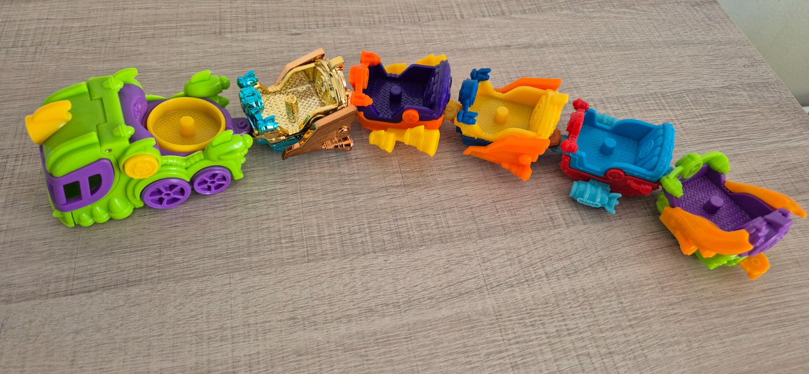 Ponúkam na predaj lokomotívu s vagónmi Super ZINGS vlak, ktorý po stlačení dvoch tlačidiel, otvorí predný poklop a premení sa na väzenie pre postavičku. Set je lokomotíva s piatimi vagónmi, kde sa môžu umiestniť postavičky Super ZINGS. Cena 8€.