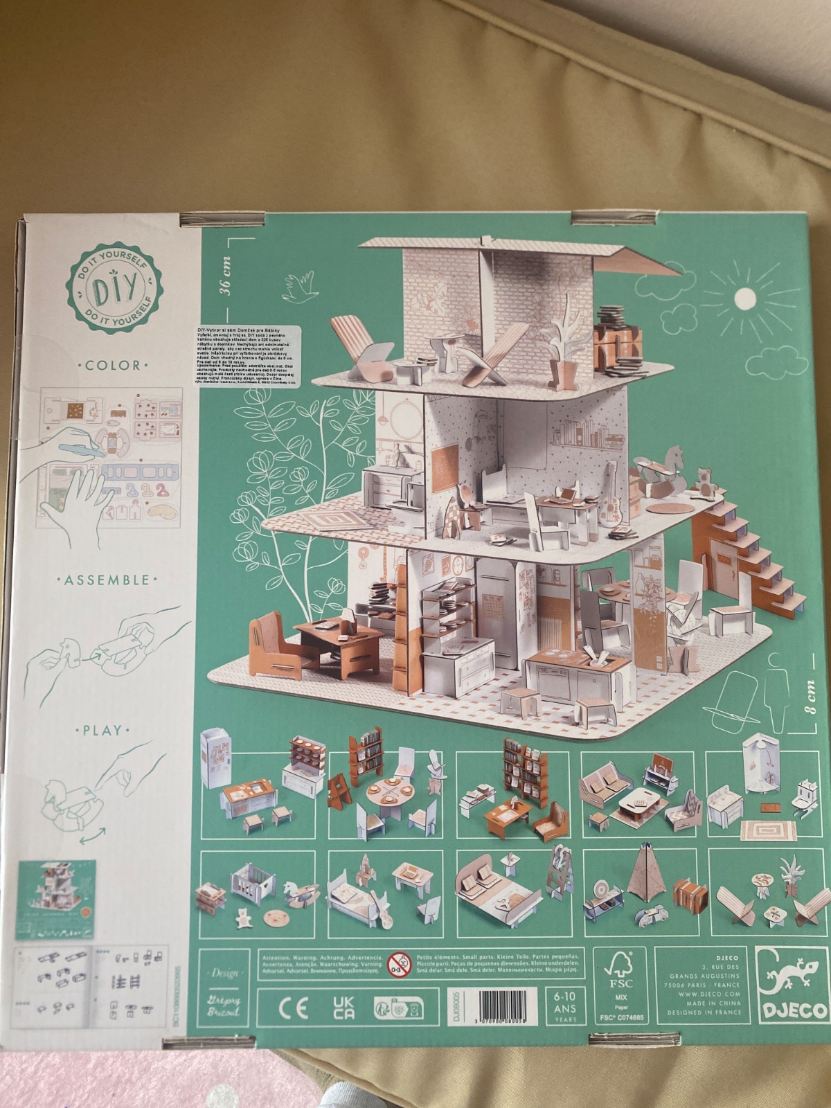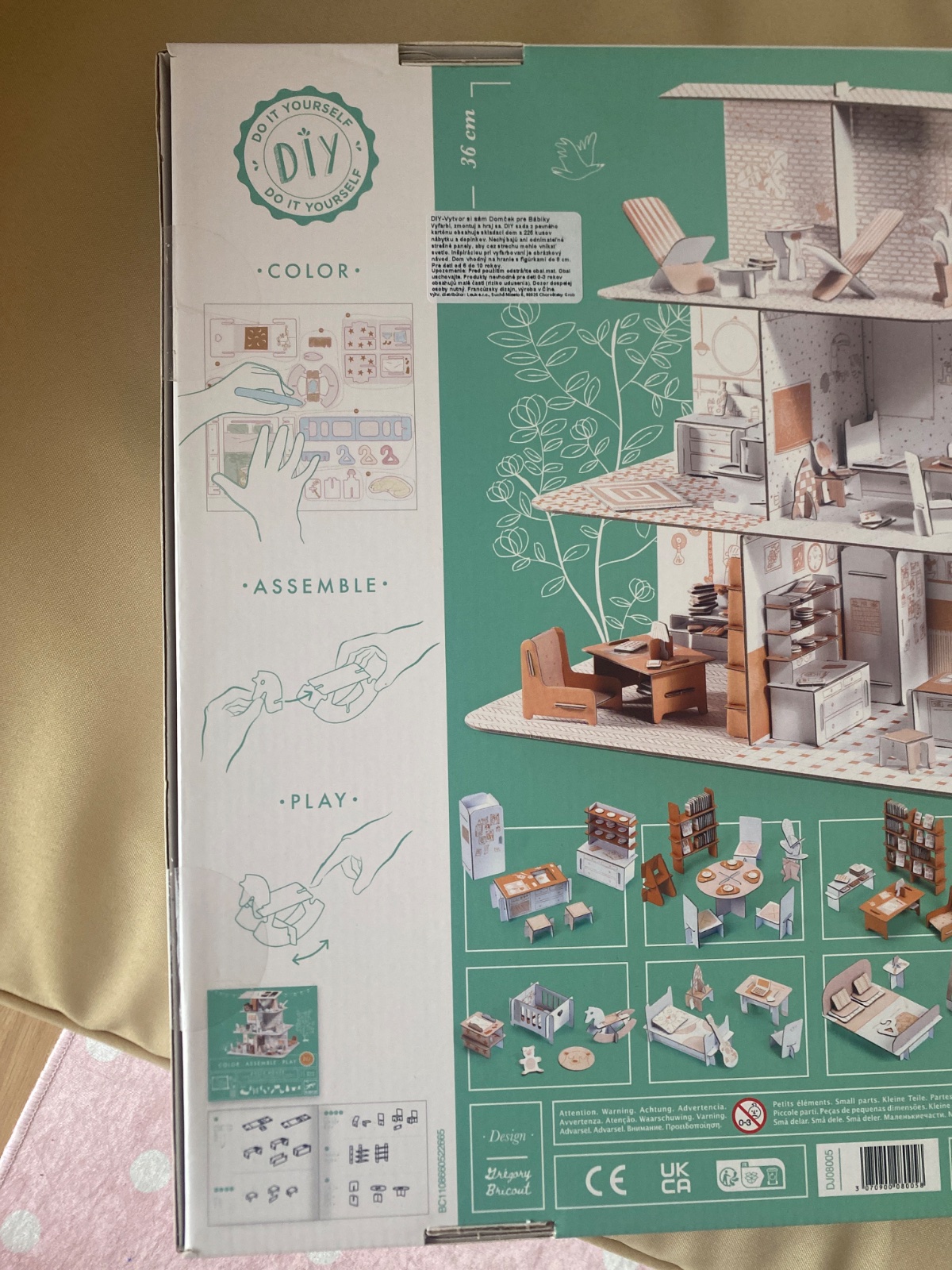 Nechýbajú dokonca ani odnímateľné strešné panely, aby aj cez strechu mohlo vnikať svetlo. Všetko je detailne ilustrované a pripravené na vyfarbenie. Inšpiráciou pri vyfarbovaní je obrázkový návod. Po vyfarbení a poskladaní je dom vhodný na hranie s figúrkami do 8 cm.