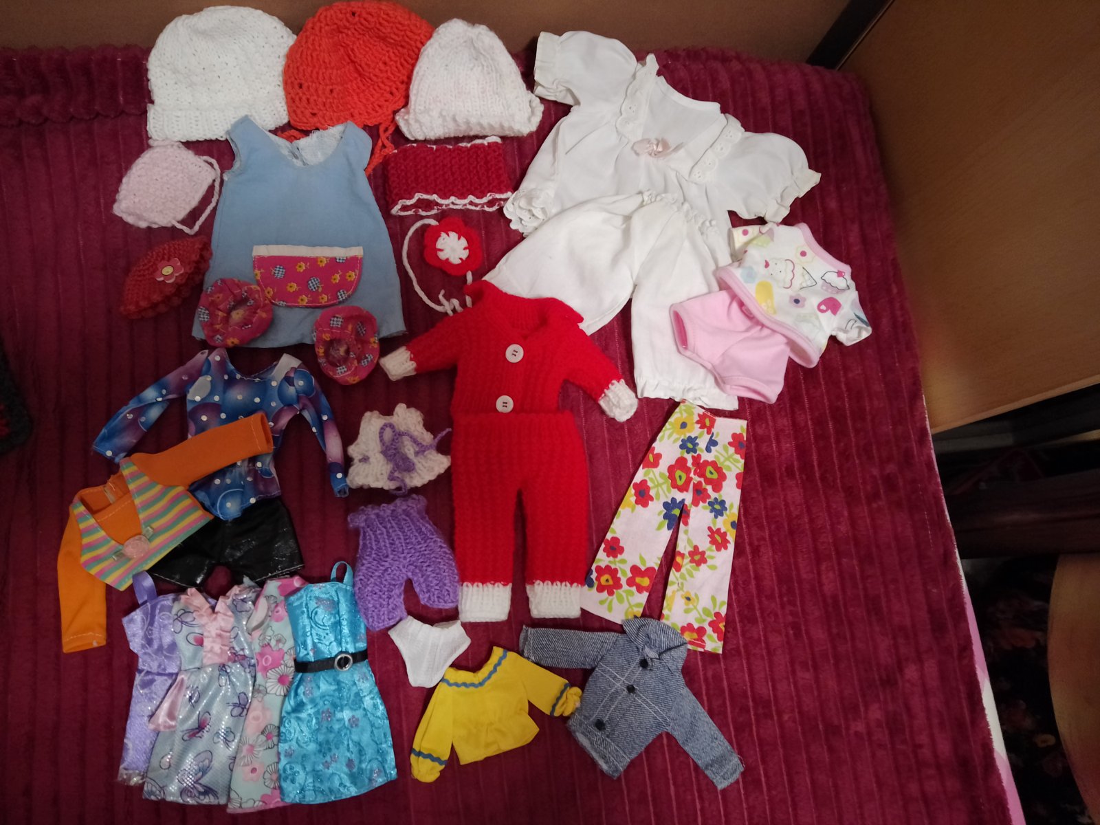 Rôzne oblečenie pre bábiky len spolu nemeriam, cena 6 eur aj s poštovným doporučene druhou triedou platba vopred na dobierku nie