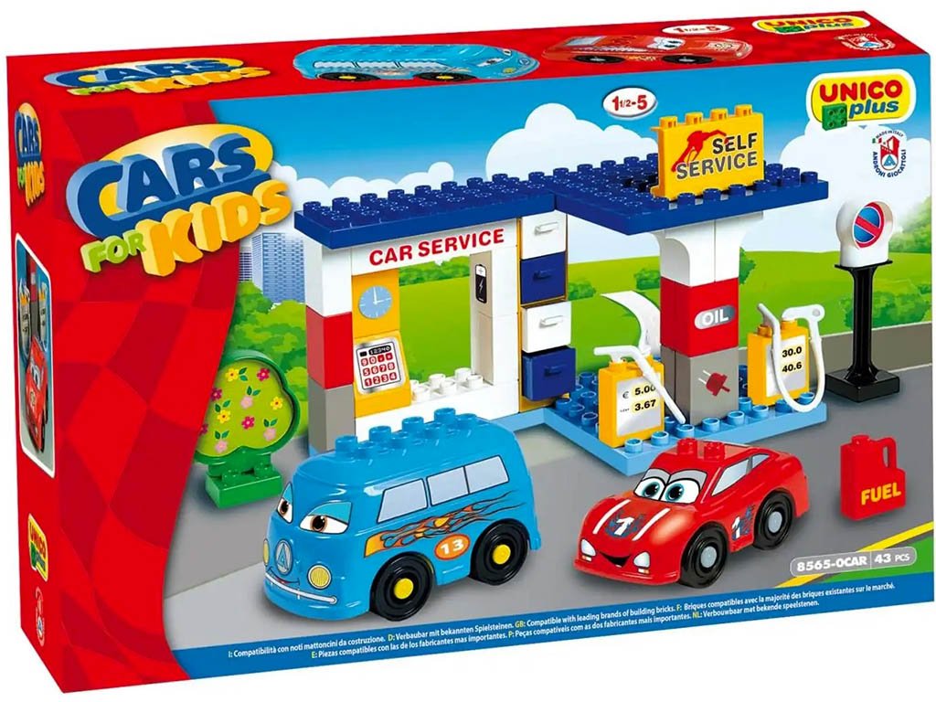 Predám stavebnicu Unico Plus Car service. Je kompatibilná s lego Duplo. Jemné známky používania, vidieť to hlavne na nálepkách, ktoré sú polepené na stavebnici. Krabicu ani návod už žiaľ nemám, ale nieje to náročné na postavenie. Cena je bez poštovného.