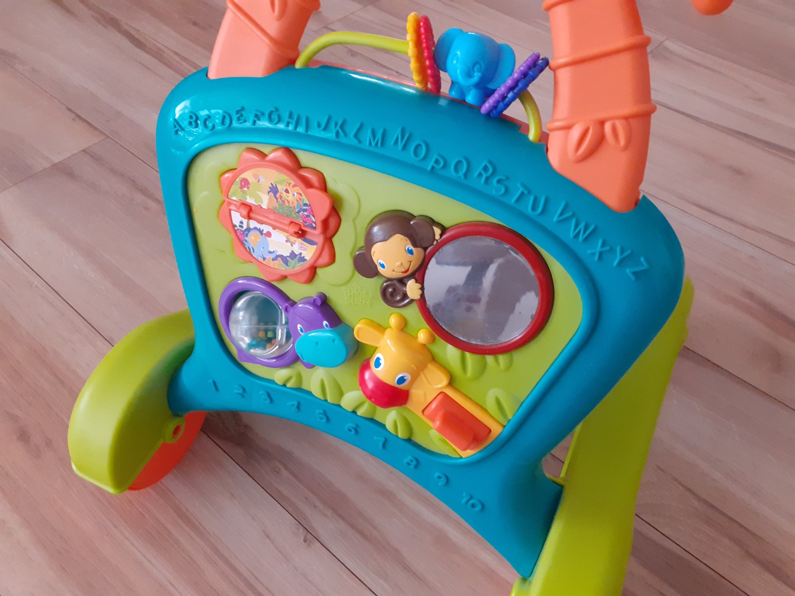 Chodítko je ľahkej plastovej konštrukcie v celku. Predné kolieska sú otočné,zadné sú gumené,chrániace podlahy(už žiadne ryhy). 3 stupňová regulovateľná výška sedenia 6 bŕzd Hracia doska s hračkami ...
