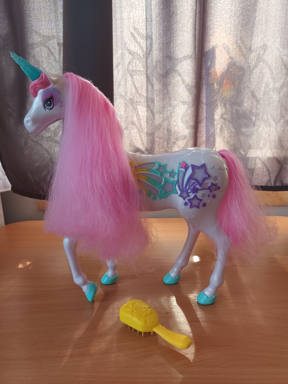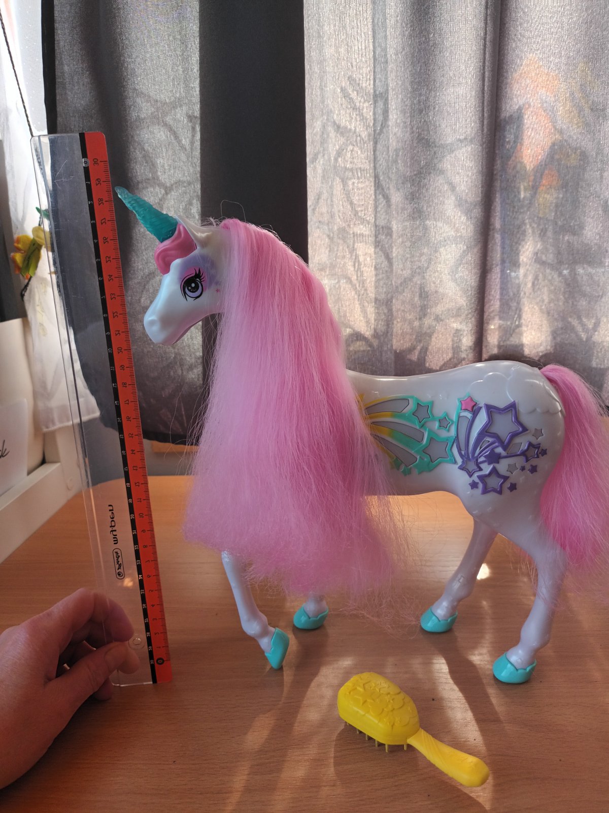 Nádherný rozpravkovy jednorožec -vysoký skoro 30cm a dlhý 25cm-Svieti-je hraný ale nie stále-je ako novy keď sa s ním dcérka nehrala vždy odložený v boxe-