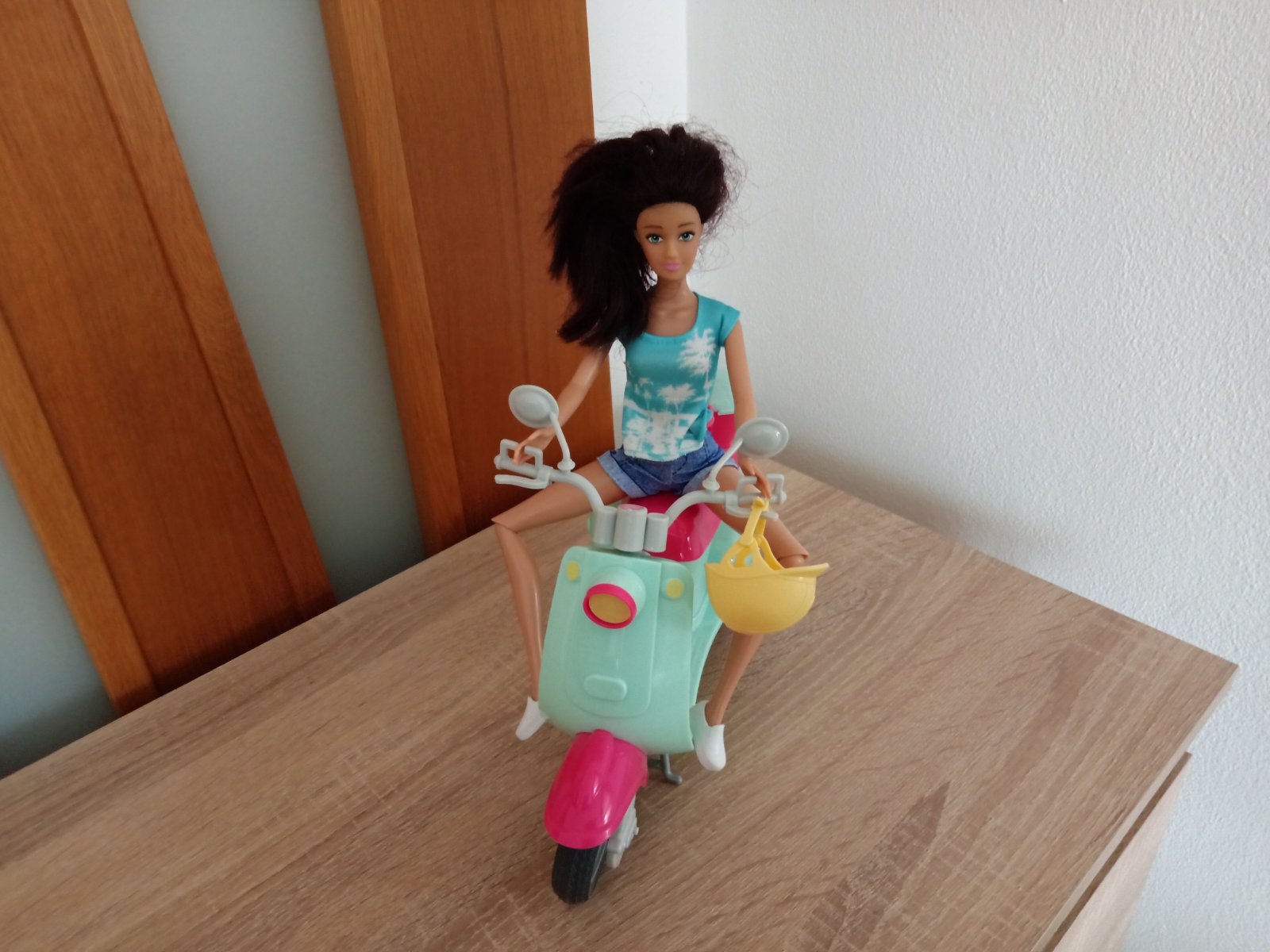Bábika so skútrom,skúter je v top stave,originál bábiku som musela vymeniť.Aj táto bábika má ohybné kolená.Cena je 12eur.