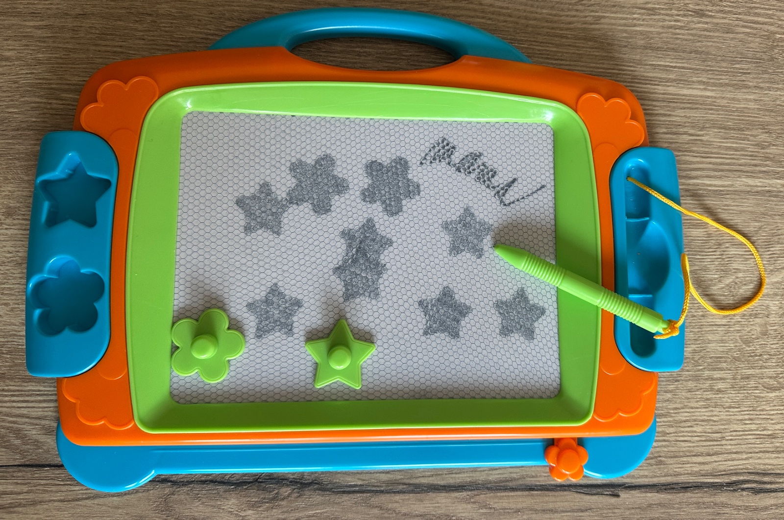🖍️ Predám detskú magnetickú kresliacu tabuľu s perom a pečiatkami.