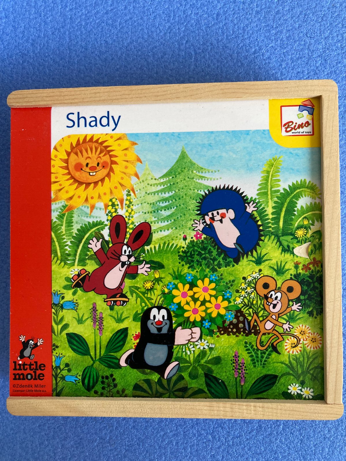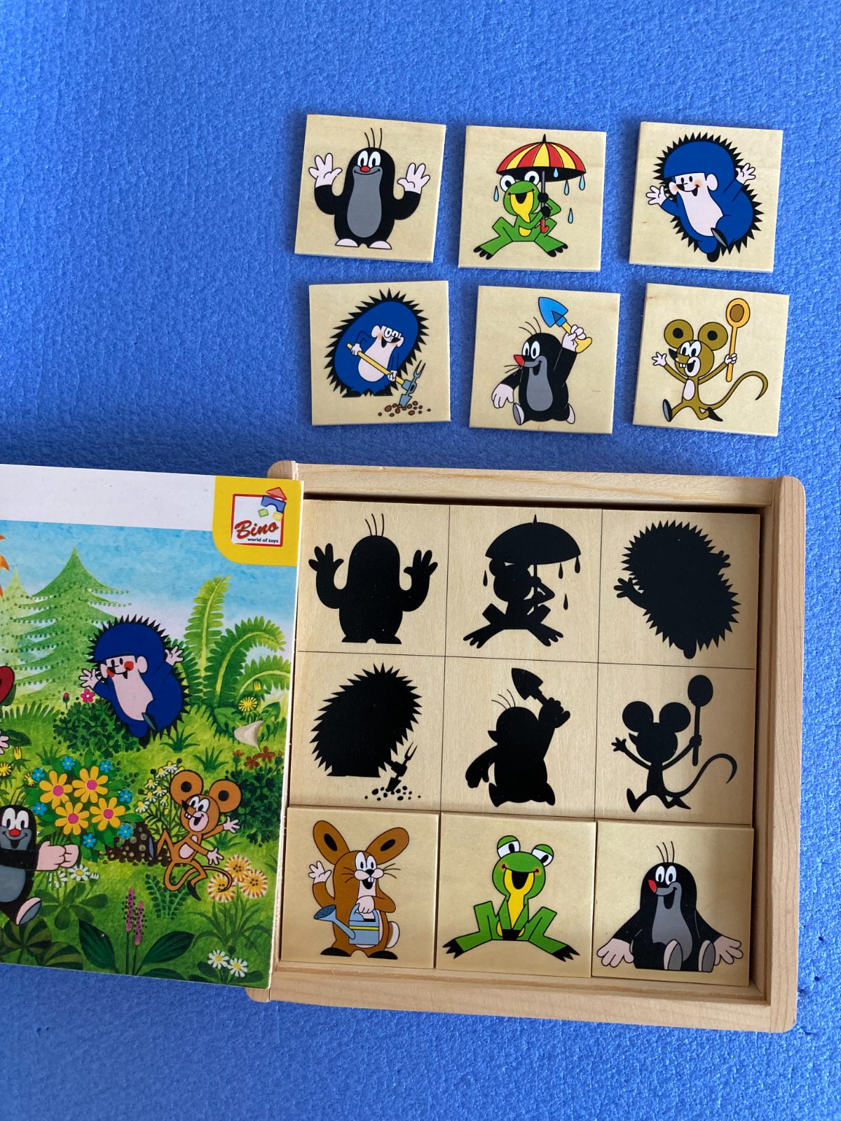 Drevená skladačka s obrázkami Krtka a jeho priateľov.