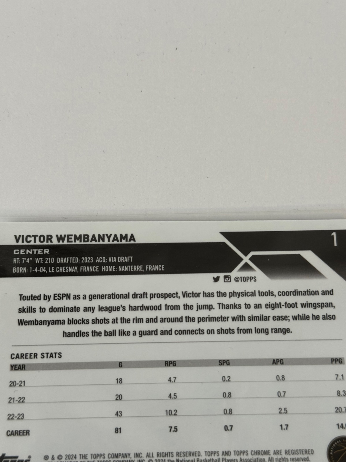 Kartička Victor Wembanyama