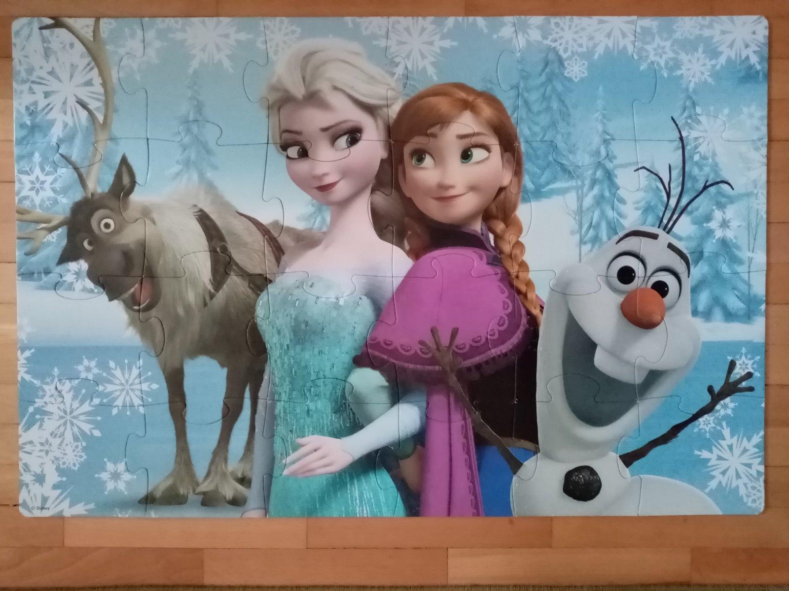 Krásne puzzle v taške, veľké dieliky, vhodné na skladanie na zemi. Rozmer 100x60cm, 24 dielikov. Dá sa poskladať farebný obrázok alebo čiernobiely na vymaľovanie. Pekný stav, viď foto.