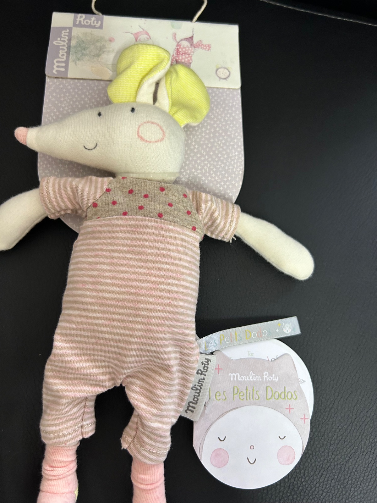 Roztomilá myška Dodos z dielne francúzskej značky Moulin Roty je mäkká, príjemná na dotyk, ideálna na hranie, spanie i na cesty! Svojím štýlom a jemným prevedením je vhodná tak pre chlapcov, ako i dievčatká.