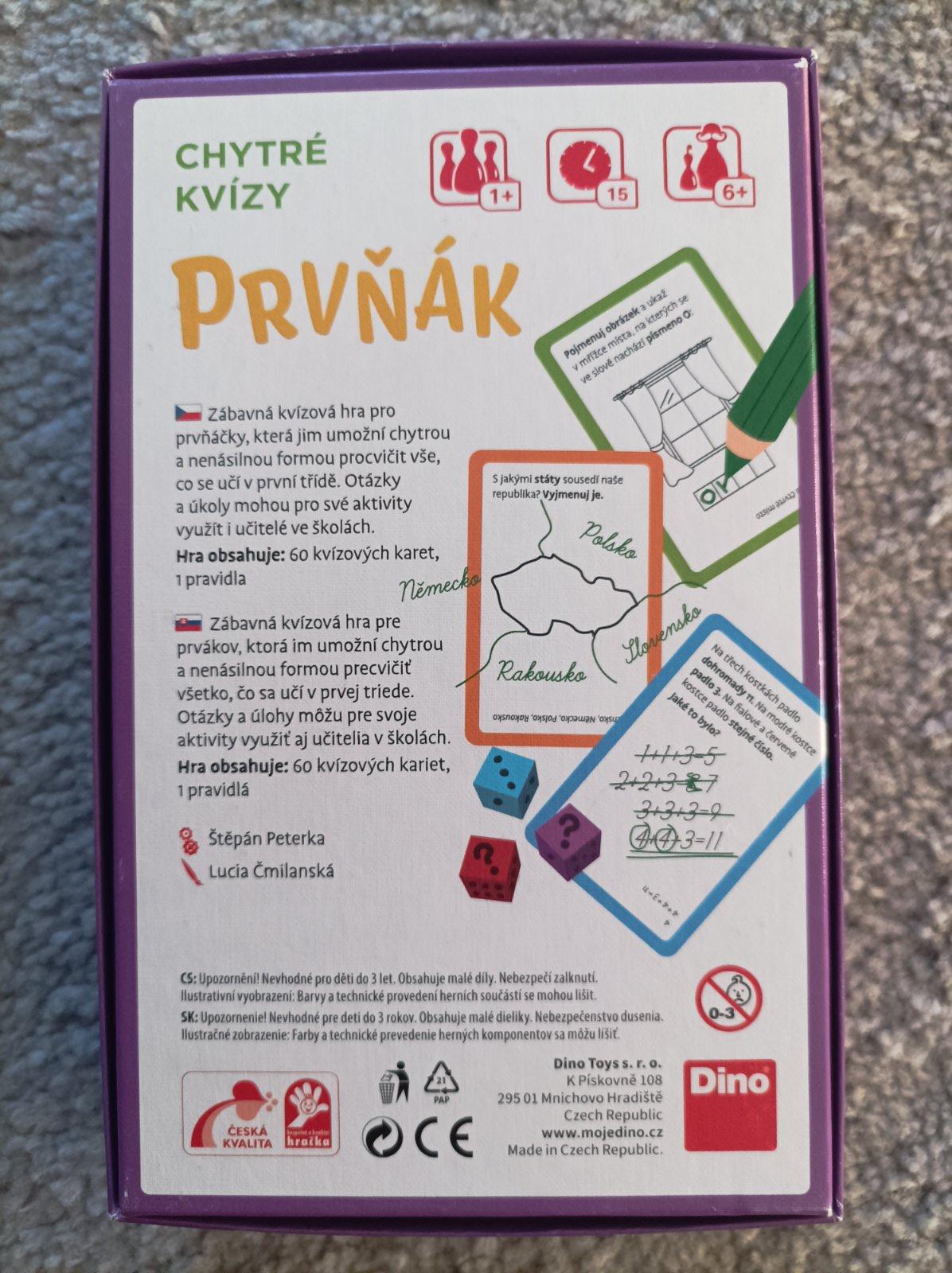Kartová hra – detská a vedomostná a náučná hra, pre 1 až 20 hráčov, rozšírenie základnej hry (hrateľné samostatne), ľahká obťažnosť, dĺžka hry 15 min, v českom jazyku, v slovenskom jazyku, vhodné od 6 rokov. Kompletná sada bez poškodenia.