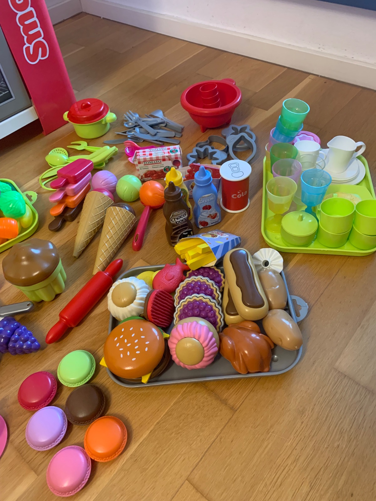 Kuchynka pre male gazdinky s funkcnym prislusenstvom - hrnce, riady, potraviny, ovocie na krajanie, zmzlinky a dalsie ako vidite na foto 😉 osobny odber BA