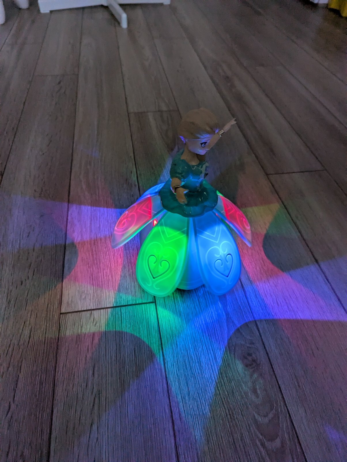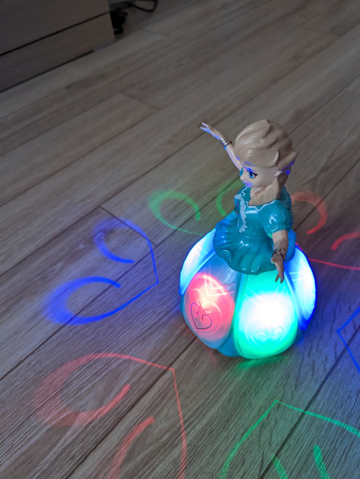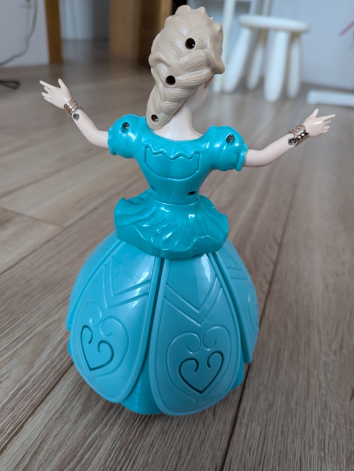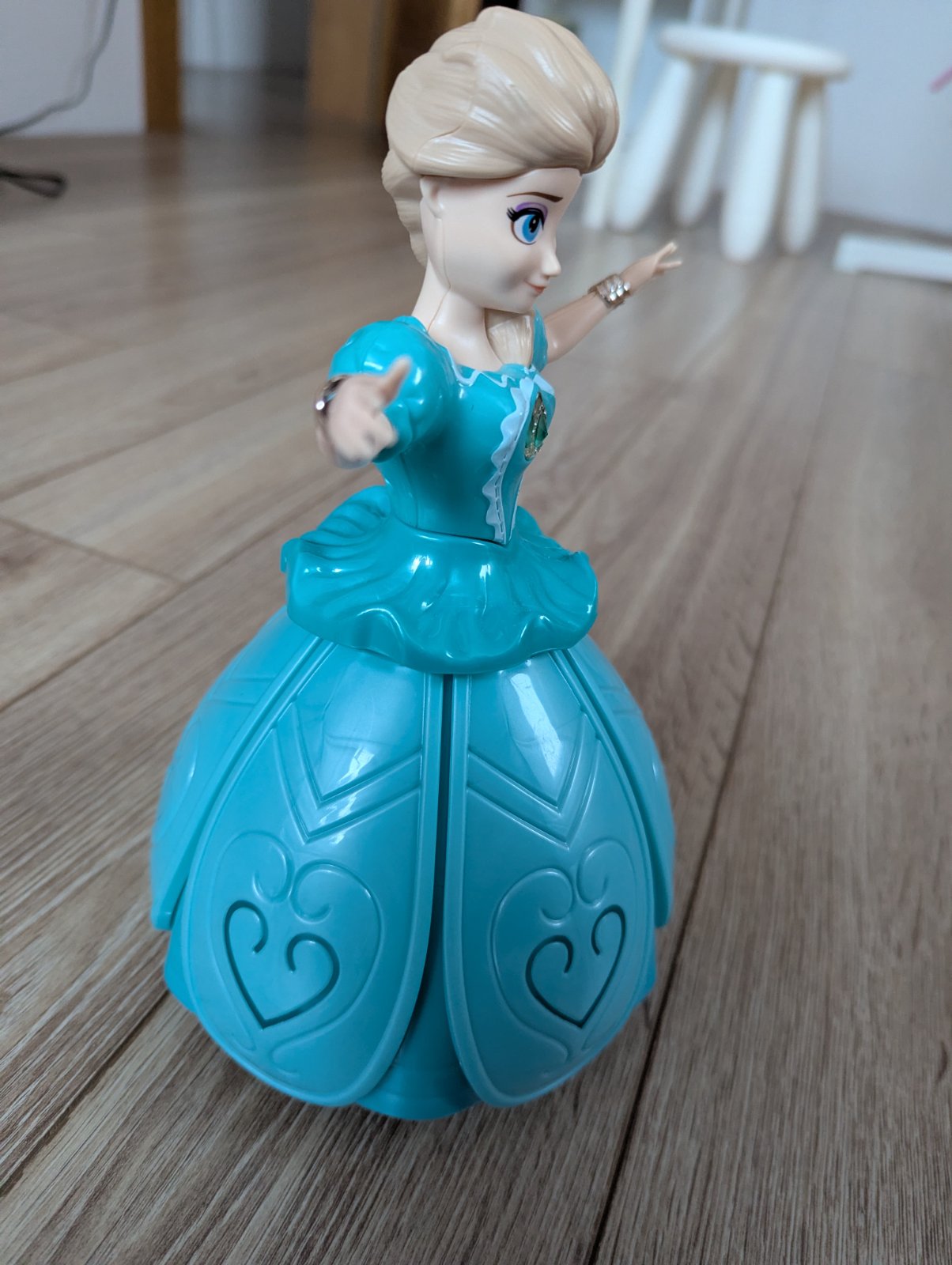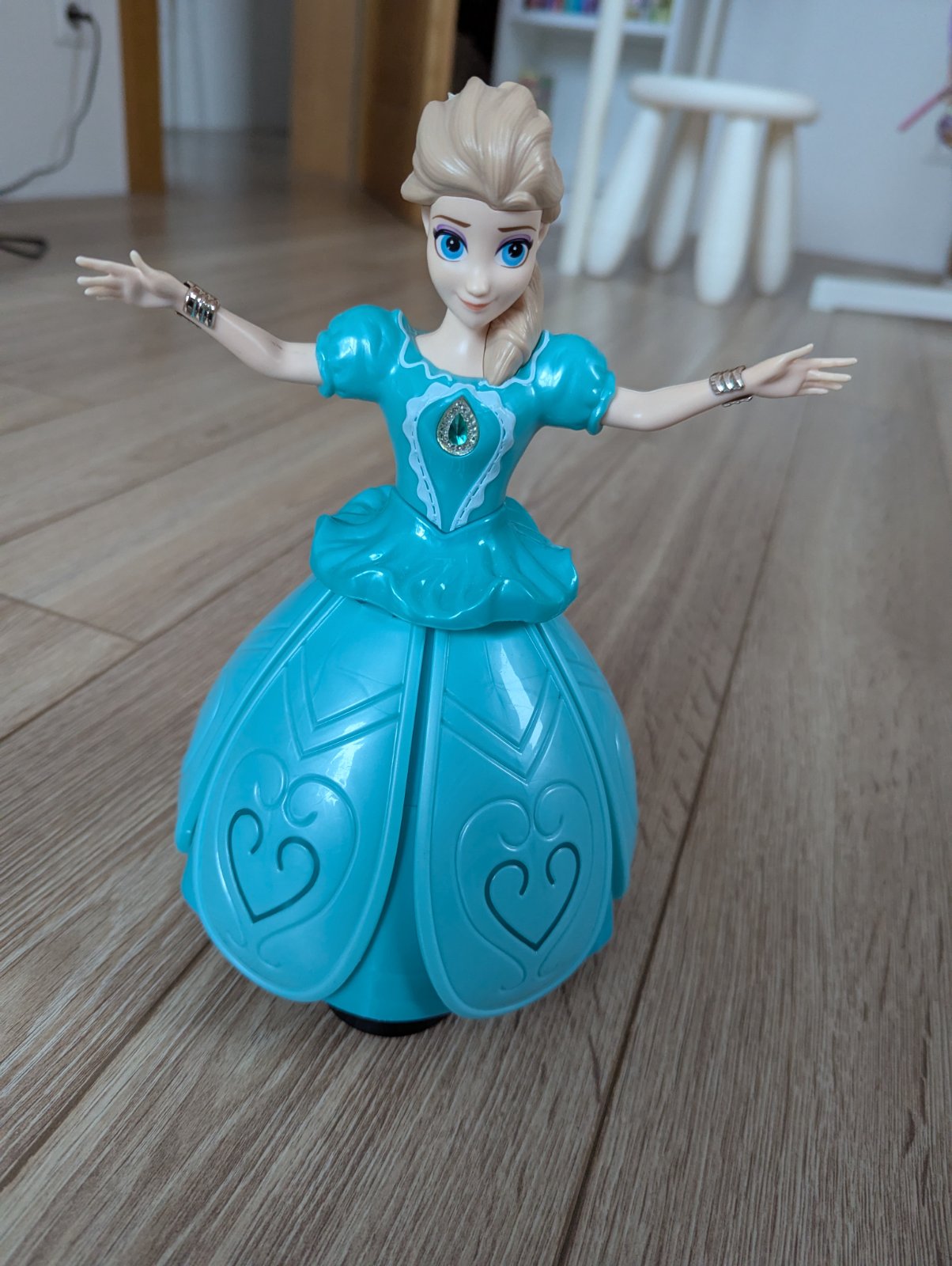Predam svietiacu, hrajucu a tancujucu princeznu Elzu z Frozen. Toci sa a posuva dopredu po podlahe, hra melodiu . Su potrebne 3 tuzkove baterie. Malo pouzivana, bez poskodeni. Povodna cena 30 eur. Vyska cca 24 cm. Cena 5 eur + postovne.