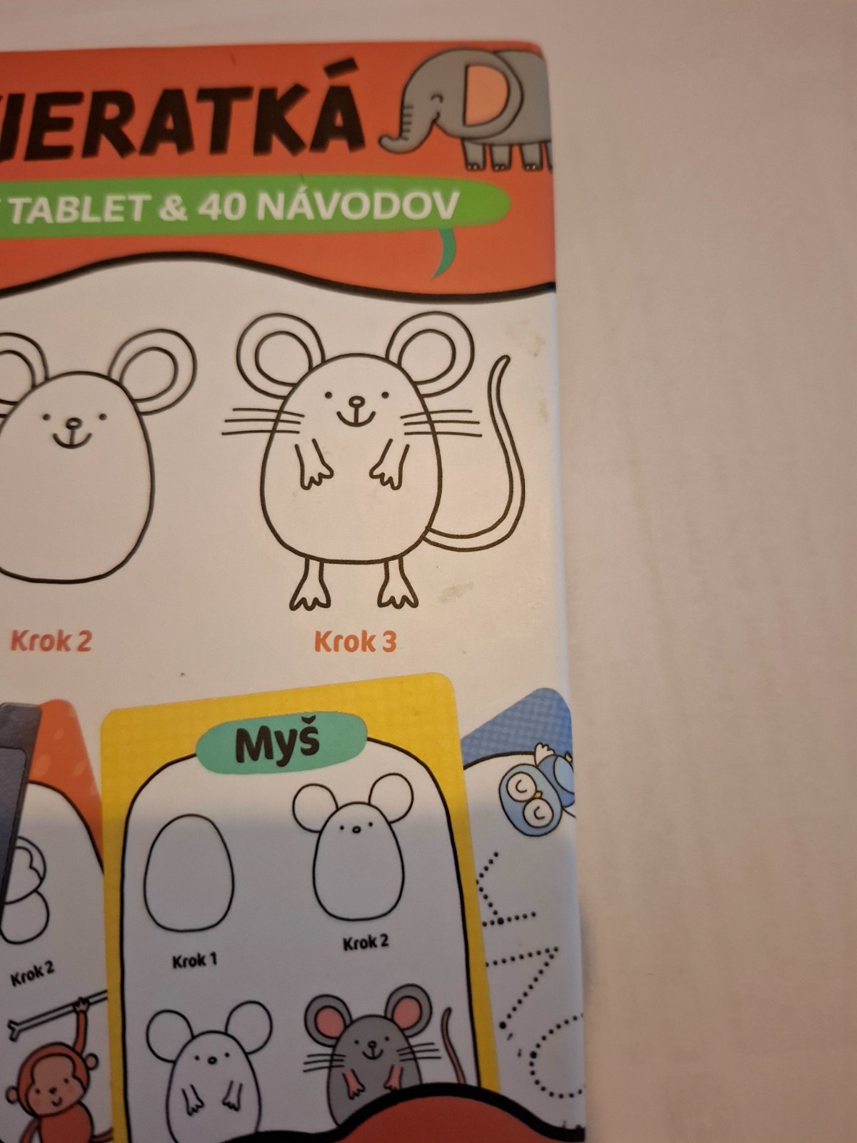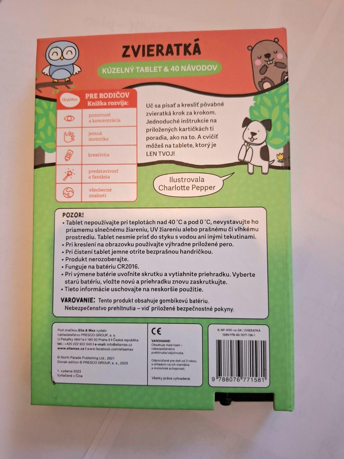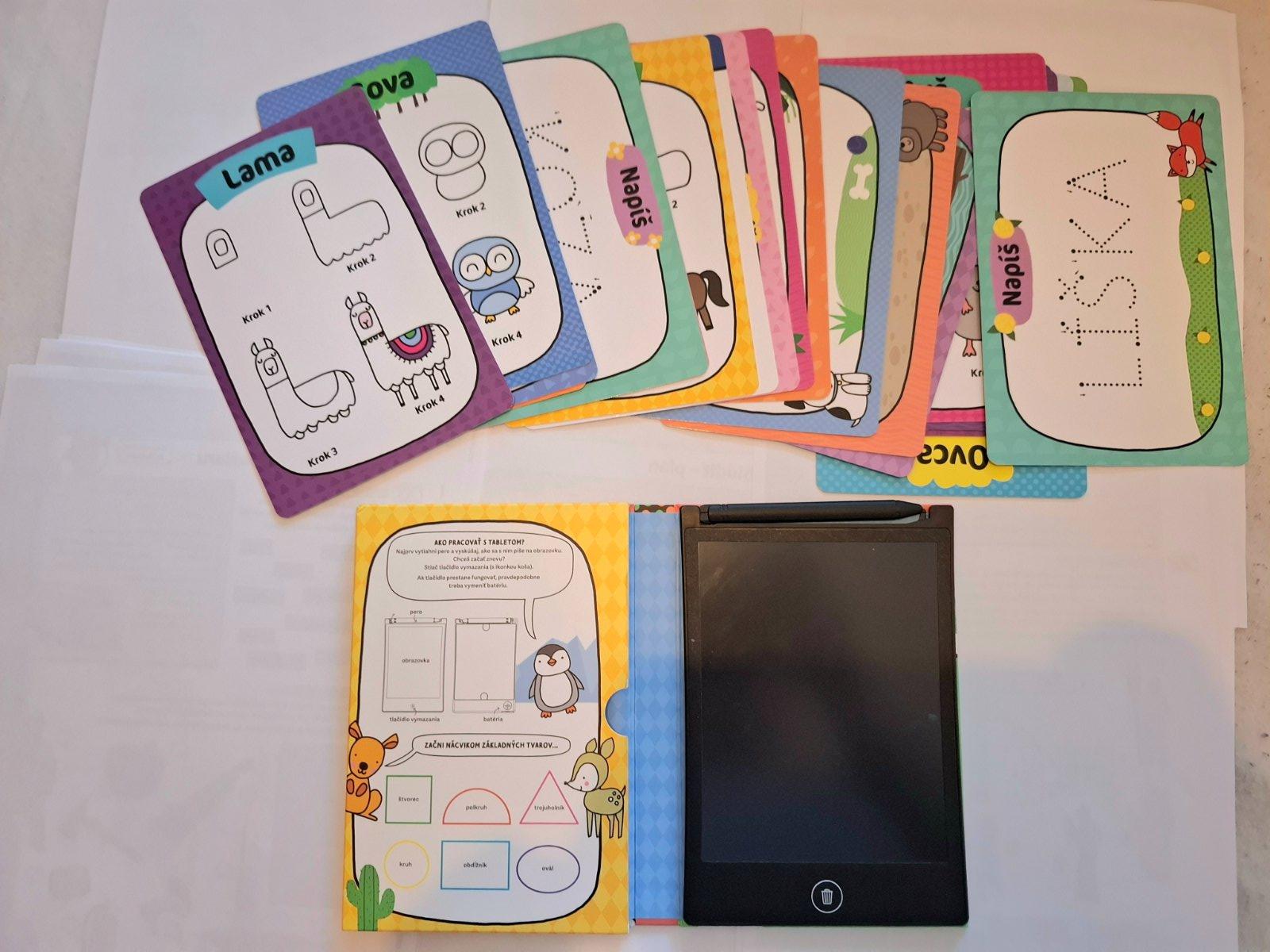 Ponúkam na predaj malý tablet na kreslenie s predlohami, vhodný aj na cestovanie. Spolu s tabletom je v sete 20 obojstranných kariet. Z jednej strany je vždy zvieratko - postup ako ho nakresliť a z druhej ako sa píše. Kupované nové.