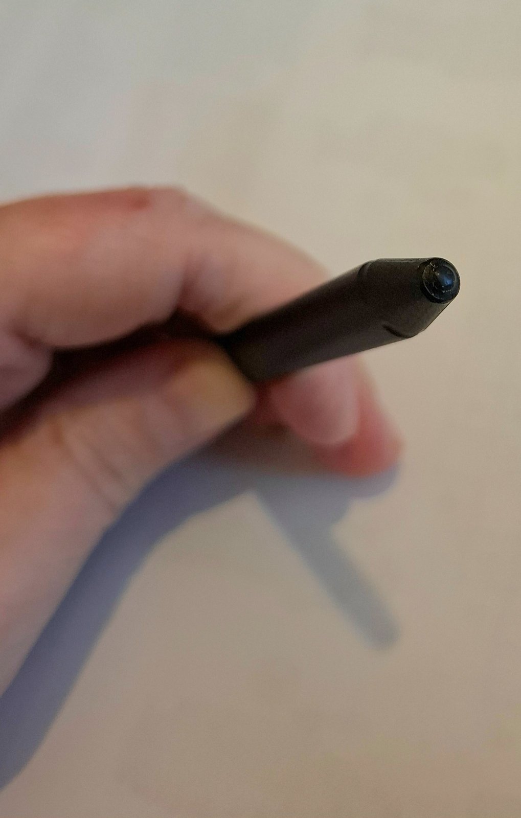 Tablet je vo veľmi dobrom hranom stave, minimálne hraný len hneď 1 použitie sa odlomil kúsok z hrota pera, ale nevidno to a ostalo to oblé, pero stále píše, neškriabe povrch. Vidno to len keď pero odložíte na svoje miesto na vrchu tabletu, kde drží horsie lebo nejde plne zacvaknúť z oboch strán. Spredu na papierovom obale je malá dierka, buchnutý rožtek na papierovom obale, čiarka asi od fixky/pera vzadu, trochu ufuľané na bielom podklade zvrchu na obale, iné poškodenia som nenašla, všetko nafotené. Fotky sa dajú zväčšiť.