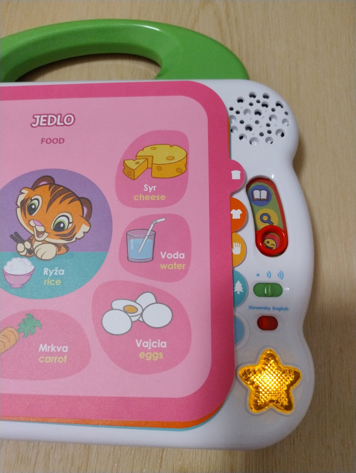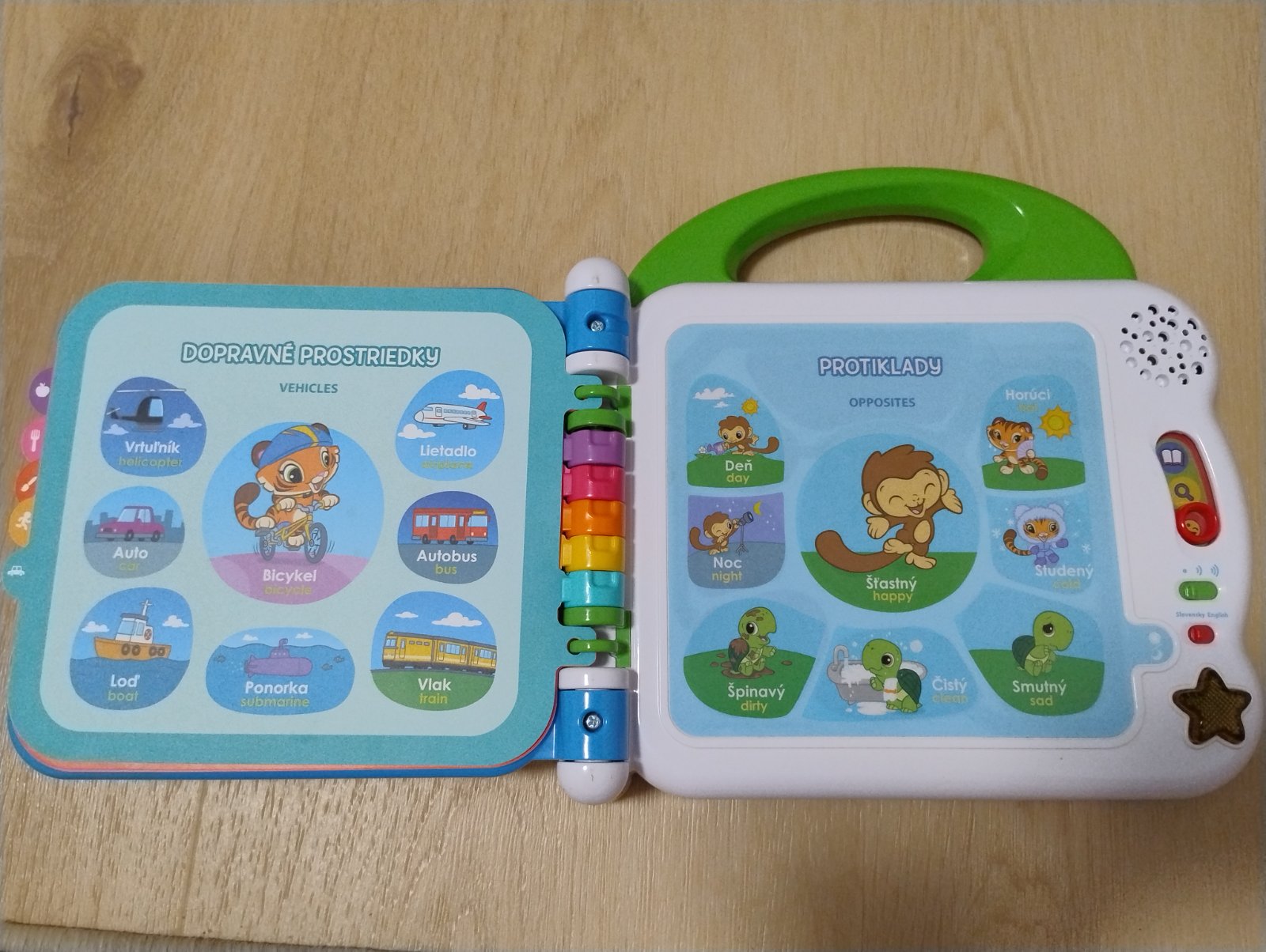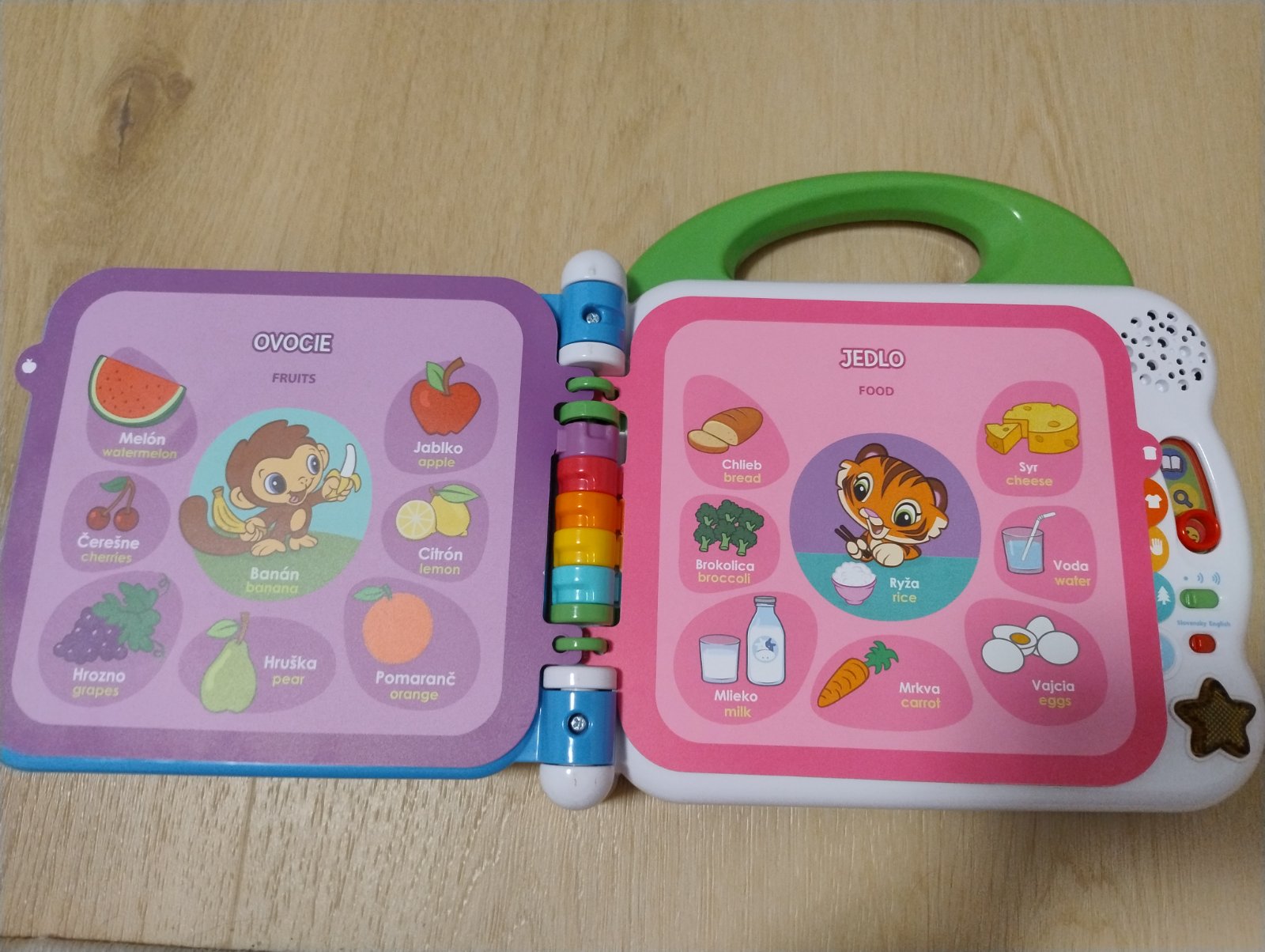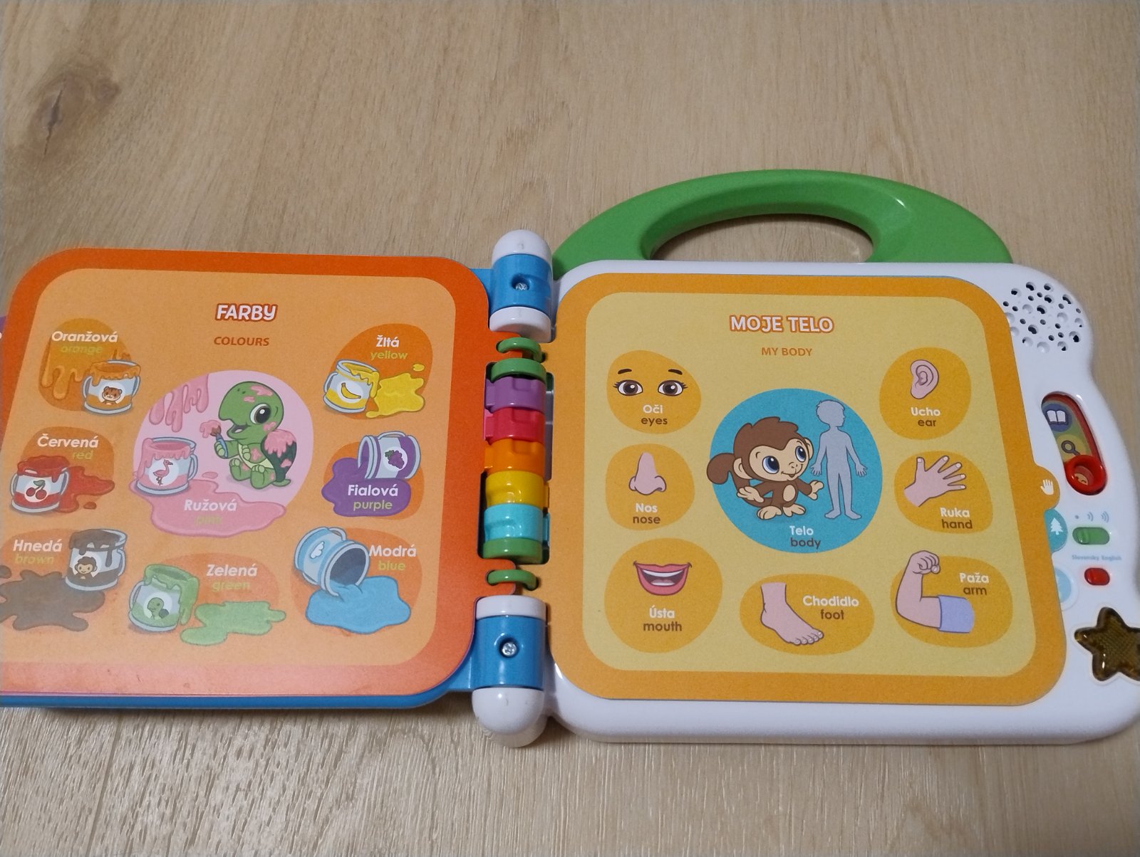 Elektronická kniha mojich 100 slovíčok reagujúca na dotyk od V-tech je veľmi málinko používaná, všetko funkčné, batérie od novoty ani nemenené. Jazyk slovenský a anglický