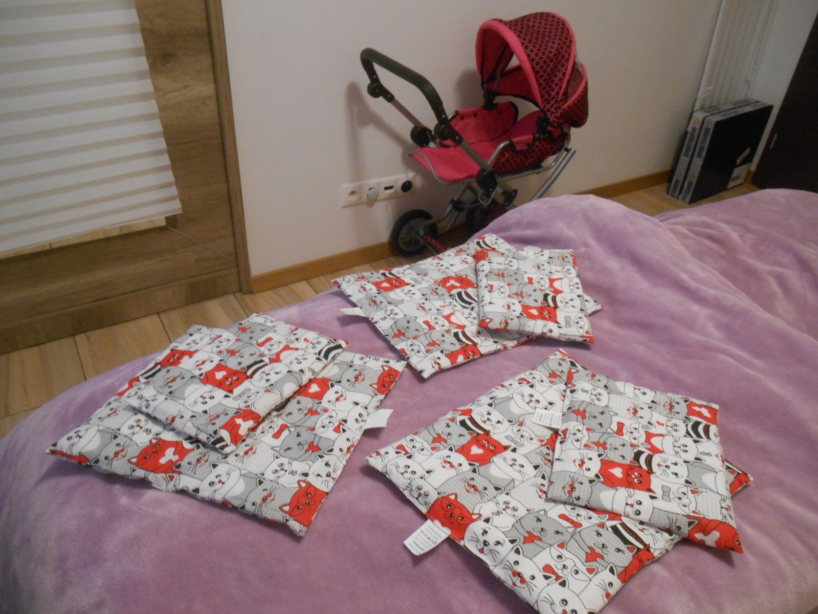perinky do kočika pre bábiku, do postielky, vrchný material bavlna, rozmer poduška 18x25, prikrývka 29x35, su uplne nové