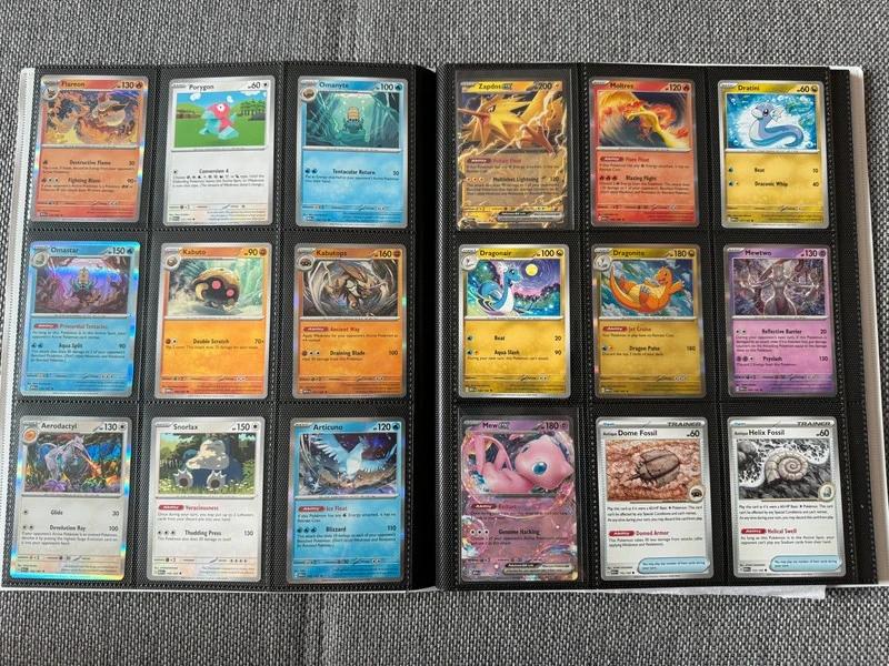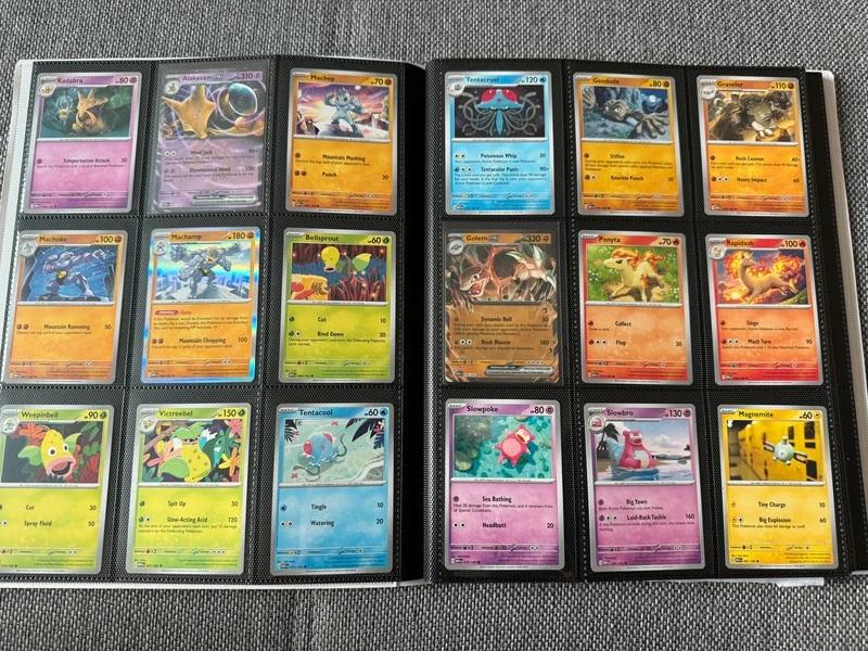Kompletný album Pokemon edície 151, všetky karty 1-165, dokopy 165 kariet - EX, Holo, trblietavé, hviezdičkové…