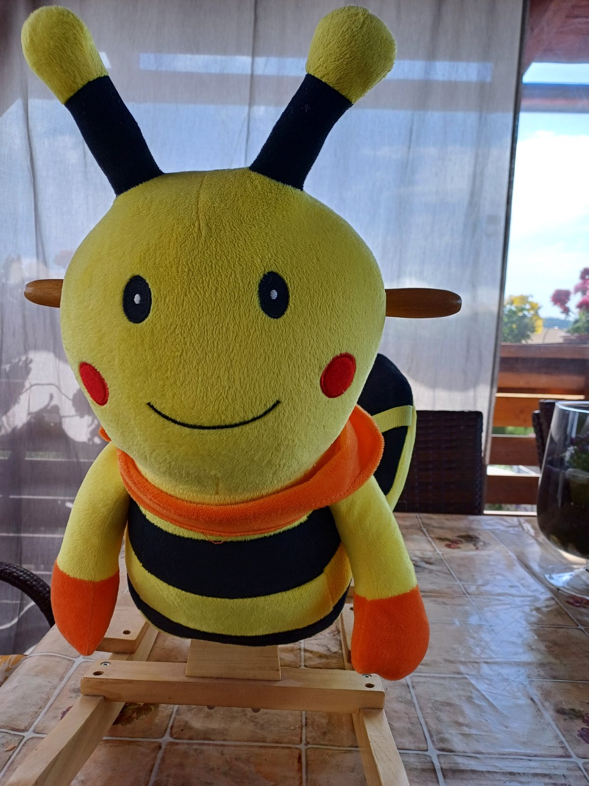 Hojdacie kreslo, včielka. Vydáva bzukanie pri stlačení jedného tykadla. Bez poškodenia, ako nové.