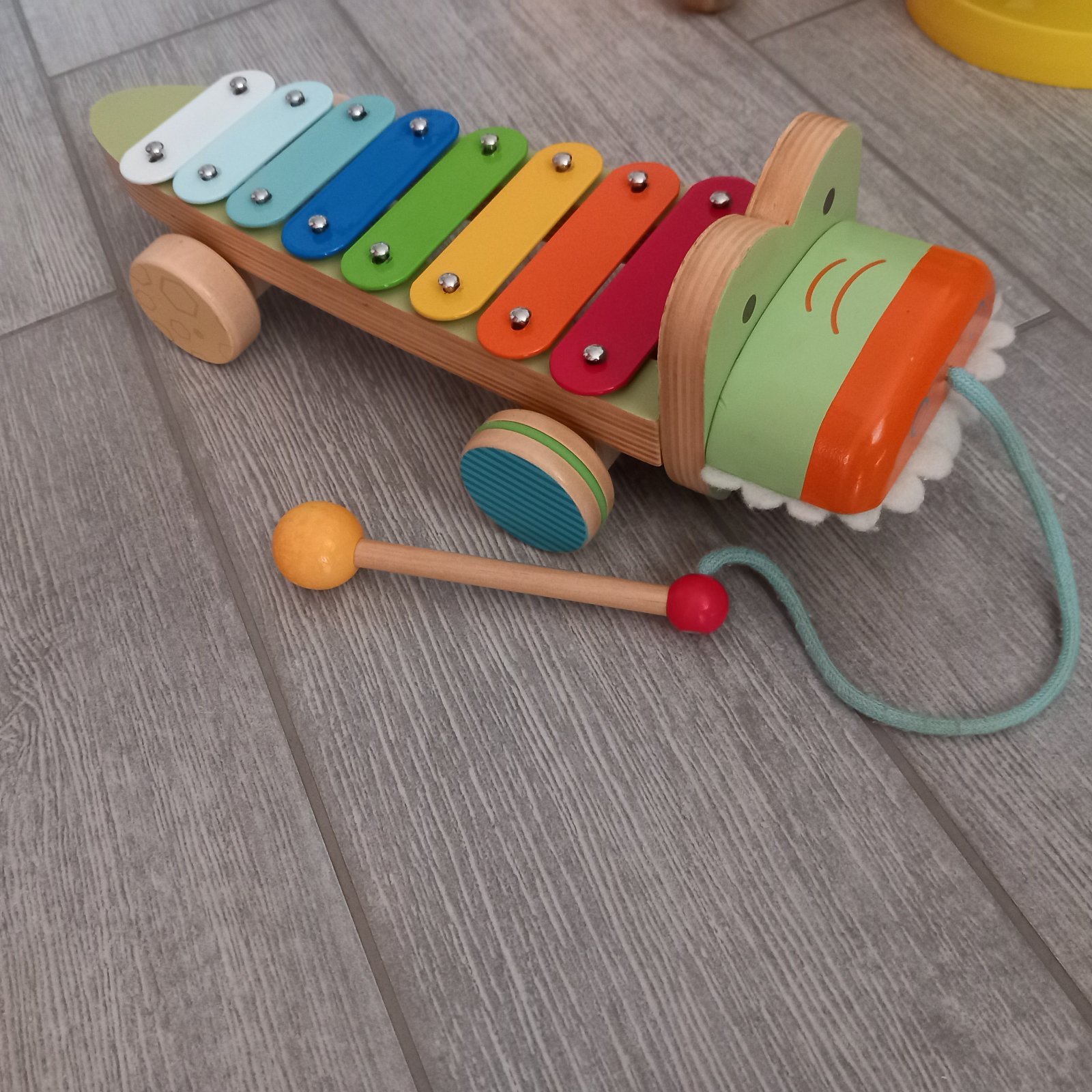 Predám Skip hop drevený xylofón - krokodíl. Hračku možno ťahať, ústa krokodíla sa otvárajú a zatvárajú. Drevo je vysokej kvality.