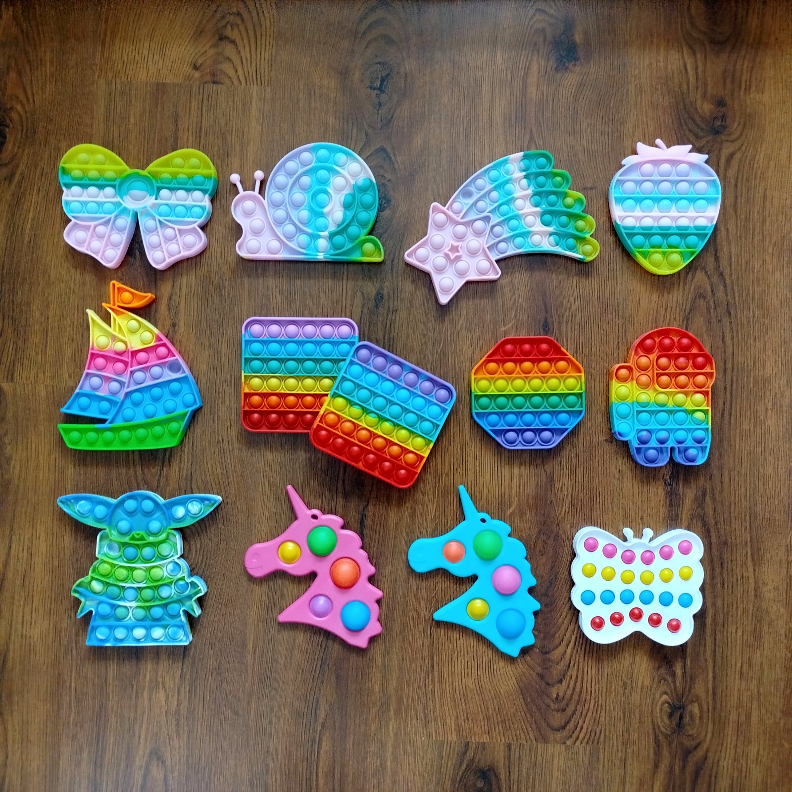 Rôzne Pop it, veľkosť od 12cm do 18cm, super stav. Baby Yoda, Amongus, plachetnica, slimák, jednorožec a iné. Kus 2€ + pošta.