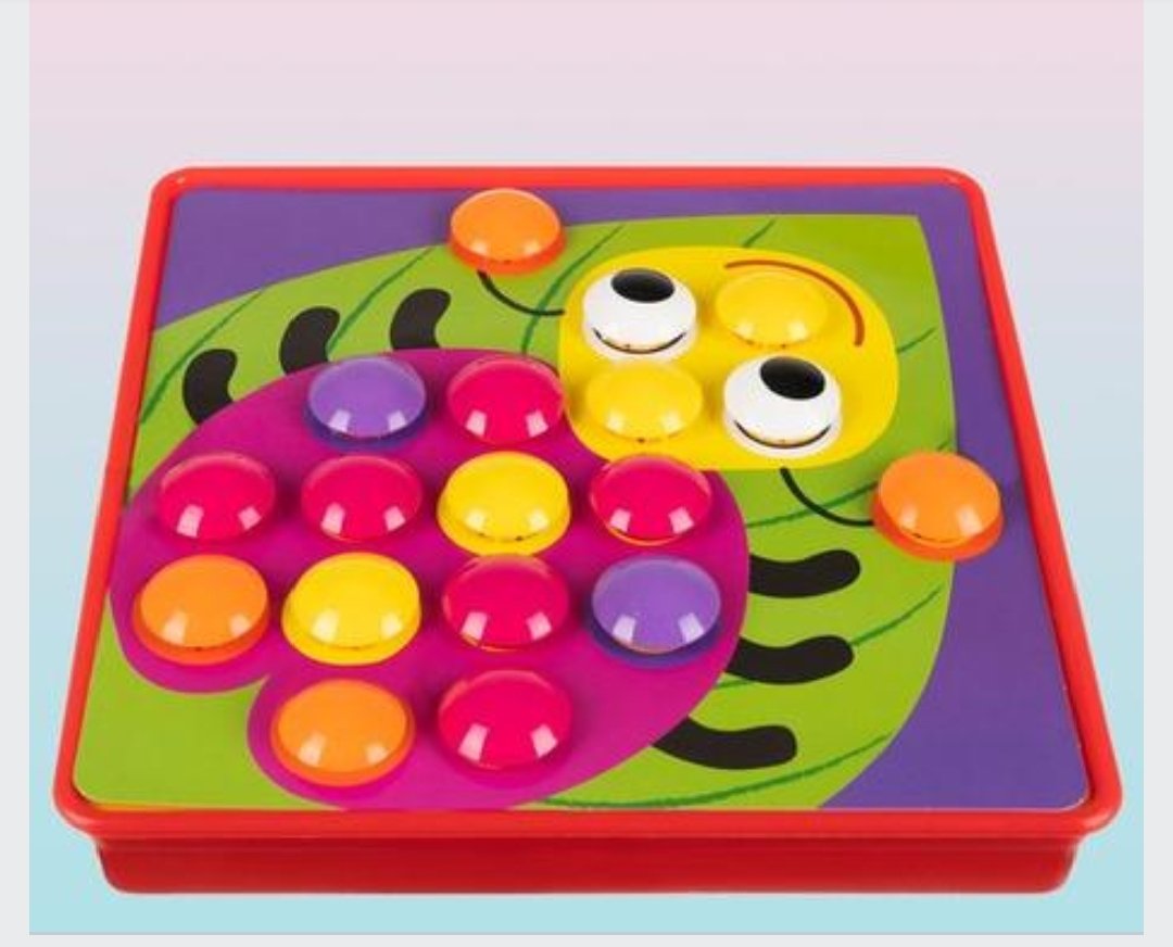 Toto zábavné mozaikové puzzle obsahuje 10 rôznych obrázkových kariet s krásnymi motívmi a 46 farebných mozaikových gombíkov. Usporiadanie rôznych motívov mozaikami je pre deti výborným spôsobom, ako si precvičiť koncentráciu, ale aj logické myslenie a takzvanú koordináciu oko-ruka.