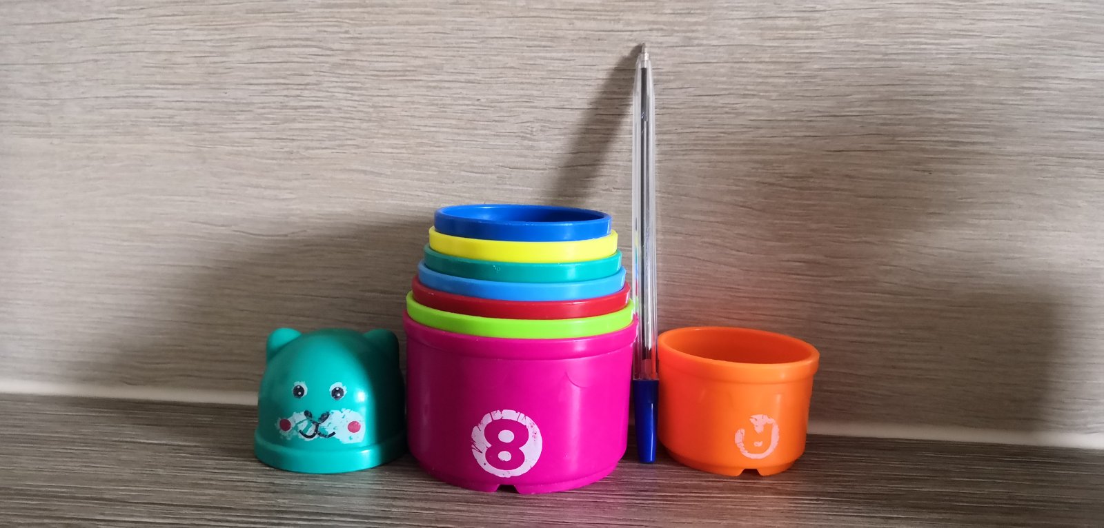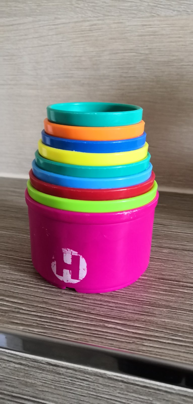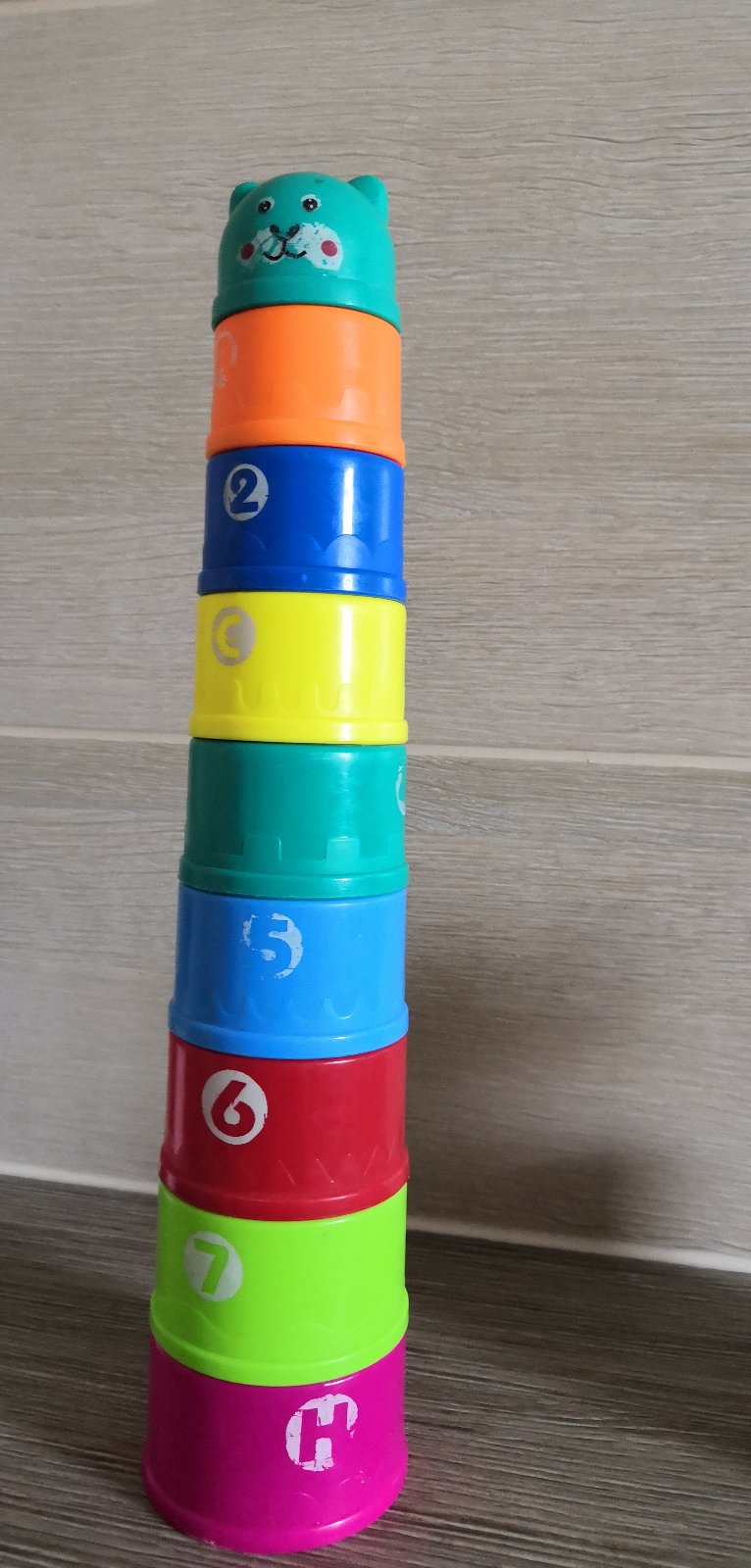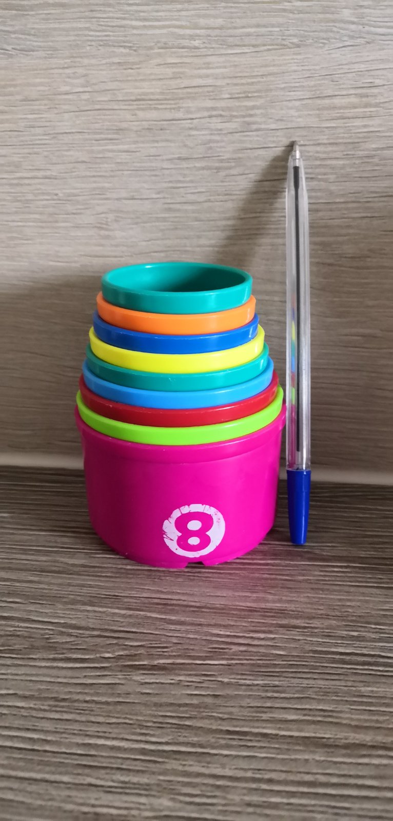 Predám poháriky, z ktorých sa dá postaviť pyramída. Čísla a písmenká mierne ošúchané.