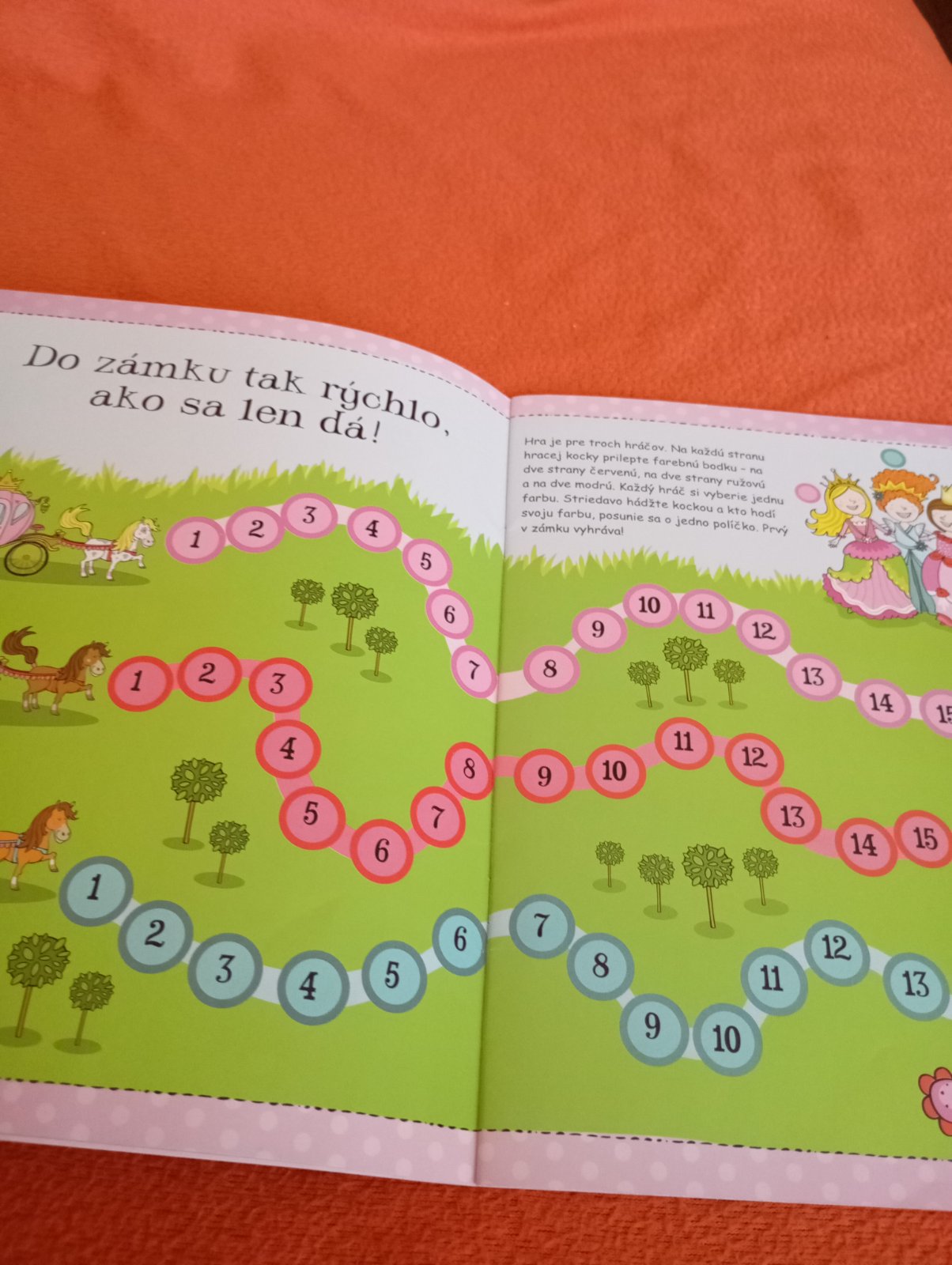 Ponúkam 4 druhy spoločenských hier, ktoré dostala dcéra, treba k nim hraciu kocku (ponúkam model kocky k hre, ktorú treba vystrihnúť a zlepiť) a figúrky. Návod je priamo napísaný na hre. Cena za 1ks s modelom kocky 1€.