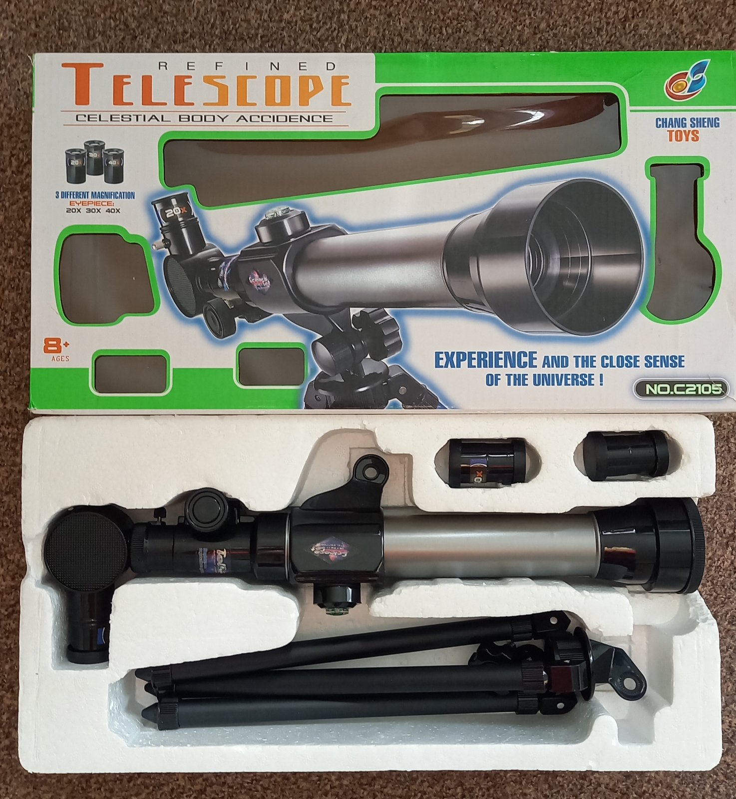Predám detský teleskop/ďalekohľad v dobrom stave, bez poškodení. Všetky diely sú v krabici, nepoškodené.