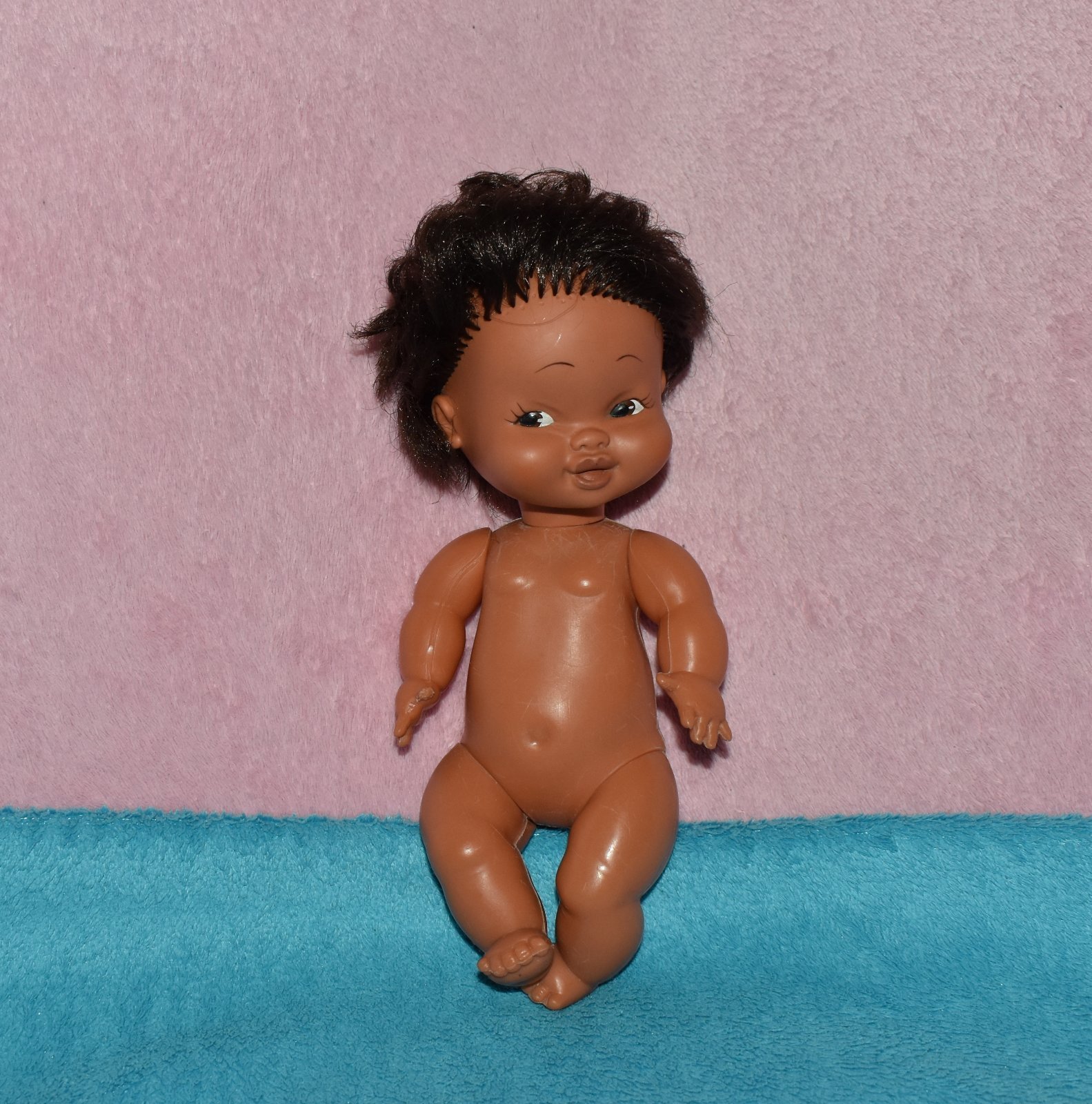 Stará retro bábika.Po tele už má škrabančeky či ďobky.Pofotené.