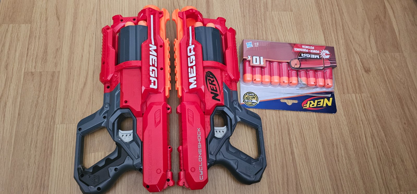 Predám v super stave 2 kusy Nerf N-Strike Elite CycloneShock Mega Launcher málo používané. Spolu k obom 21 šípok - nábojov.