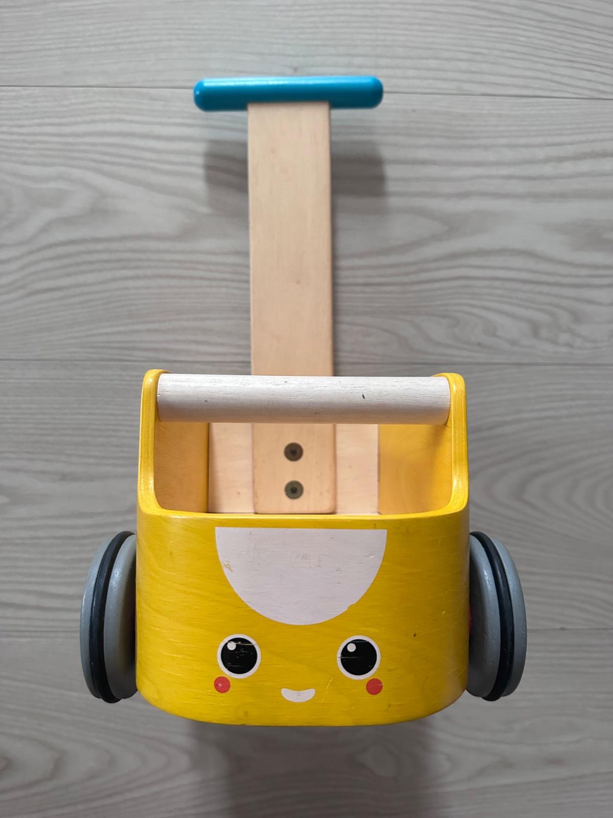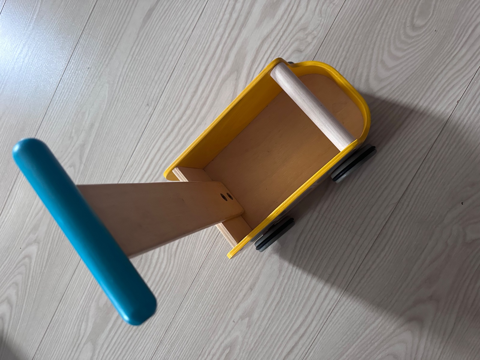 sko nové. Dá sa tlačiť, ručka sa dá posunúť vyššie. Je tam aj brzda, keď sa zatiahne kolieska sú napevno. Rozmery najnižšia výška je 44, keď sa posunie rucka, tak +5cm. Autíčko dĺžka 30, výška 17, šírka 16.