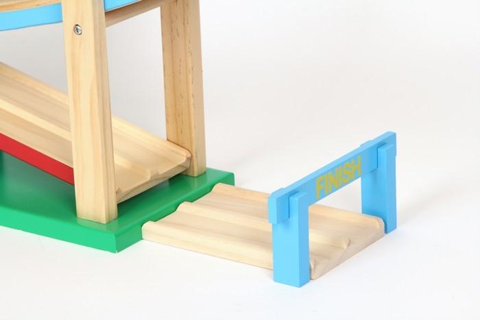 Kto získa titul - Sebastian alebo Kimi? Táto gigantická drevená dráha s dvomi pretekárskymi vozidlami, štartovými bránami a nastaviteľným cieľom je vždy skvelou zábavou.