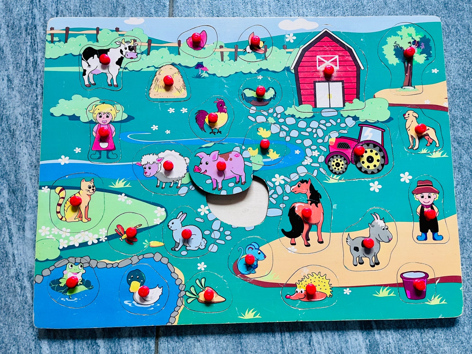 Vacsie oblubene drevene puzzle s uchytmi. Vidiet mierne opotrebenie. Inac bez poskodeni.