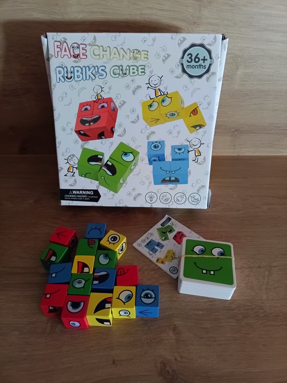 Návod: Každý hráč si vyberie 1 sadu kociek s príslušnými kartami. Karty zamiešajte. Každý hráč si potom vyberie 1 kartu zo svojej kôpky. Podľa príslušnej karty zostaví tvár. najrýchlejší vyhráva.