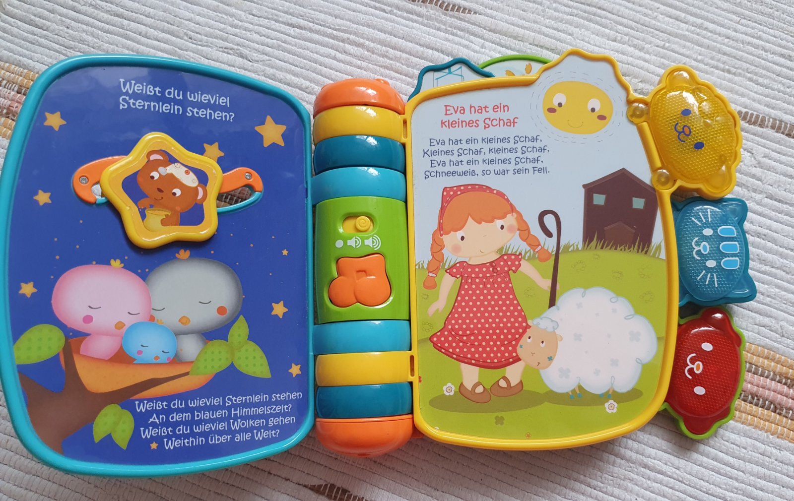 Hudobná knižka pre najmenších v nemčine na baterky.