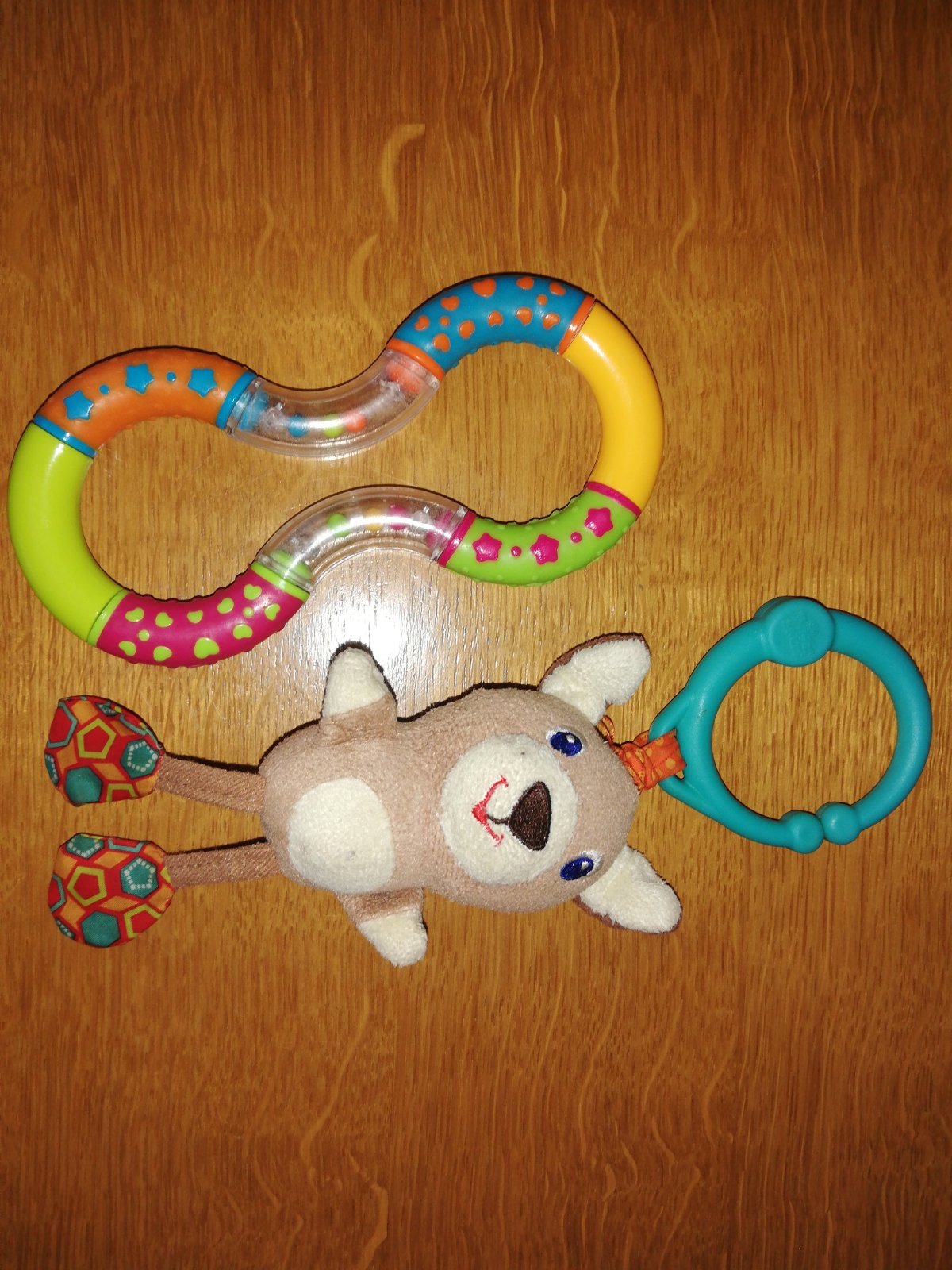 A ohybné hryzátko so senzomotorickými znakmi - hviezdičkami, guľkami, dá sa kadejako ohýbať :)
