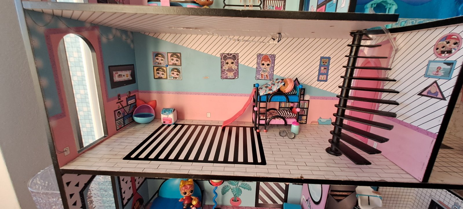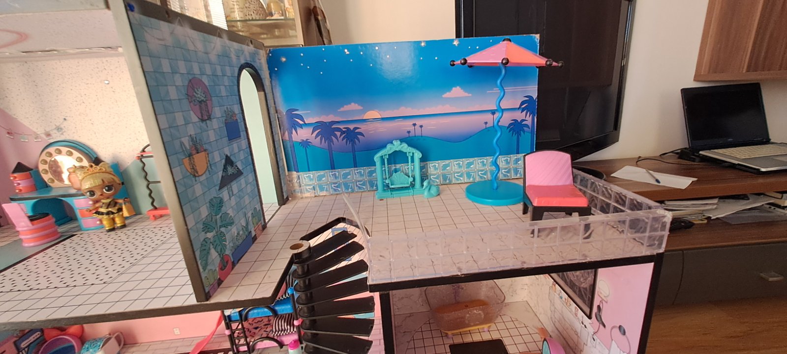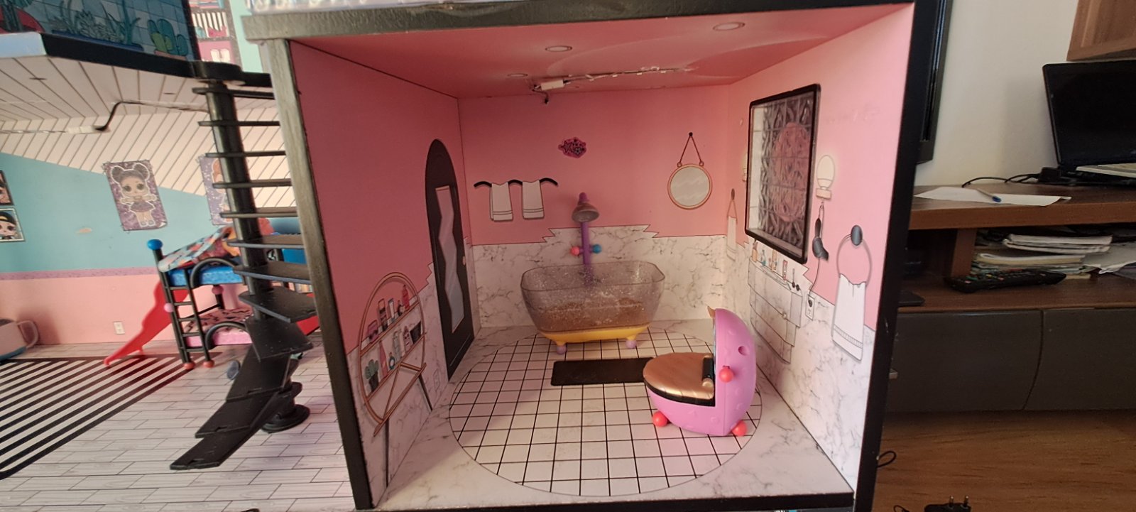Ponukam hrany domcek pre babiky LOL v super stave. Dorobili sme na domceku osvetlenie. V kazdej izbe je LED pasik a ked sa trafko zapne do elektriny, cely domcek svieti (vid. posledna fotka).