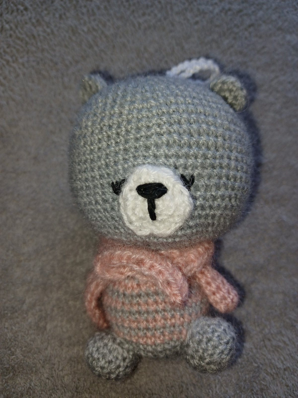 Túto medvediu slečnu si už privlastnila moja dcérka, ale ďalšiu môžem vyrobiť približne do týždňa. Macko je háčkovaný z priadze 55% bavlna/ 45% polyakryl. Mám k dispozícii aj priadzu zo 100% bavln...