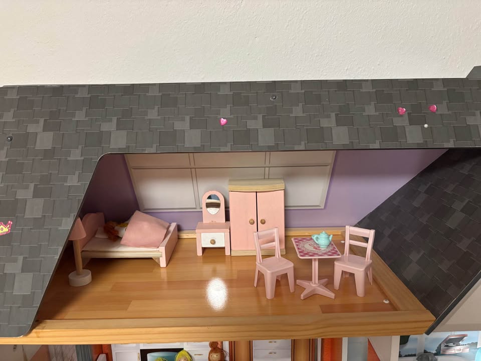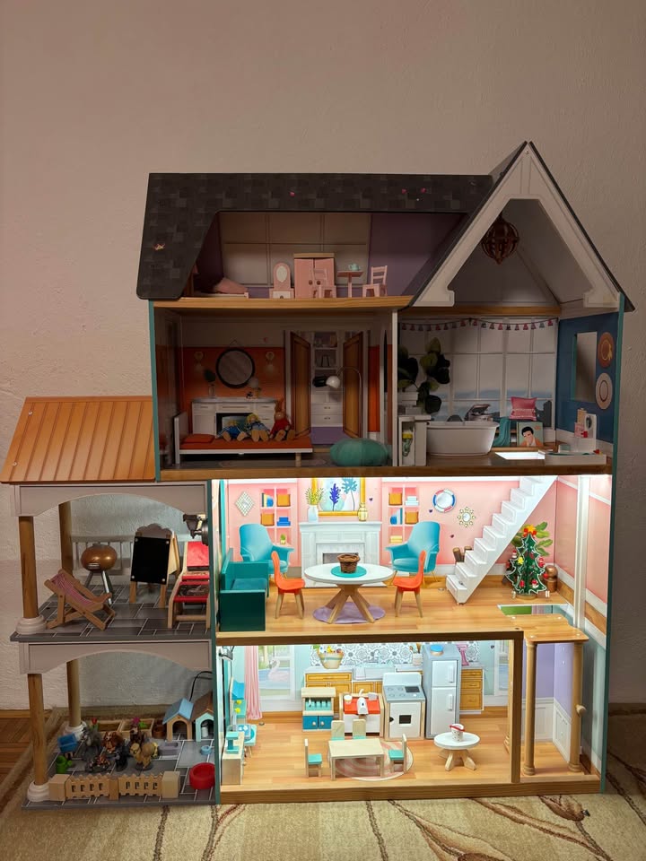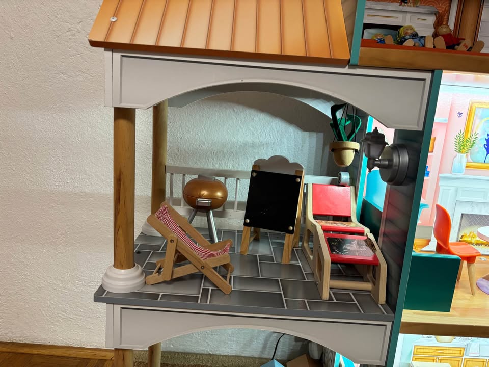 Predám drevený domček na hranie zn. KidCraft. Používaný, bez poškodení. Podsvietený, so zariadením ako na foto. Výška 135 cm, šírka 120 cm, hĺbka 30 cm. Ideálne osobný odber, domček je v zmontovanom stave.