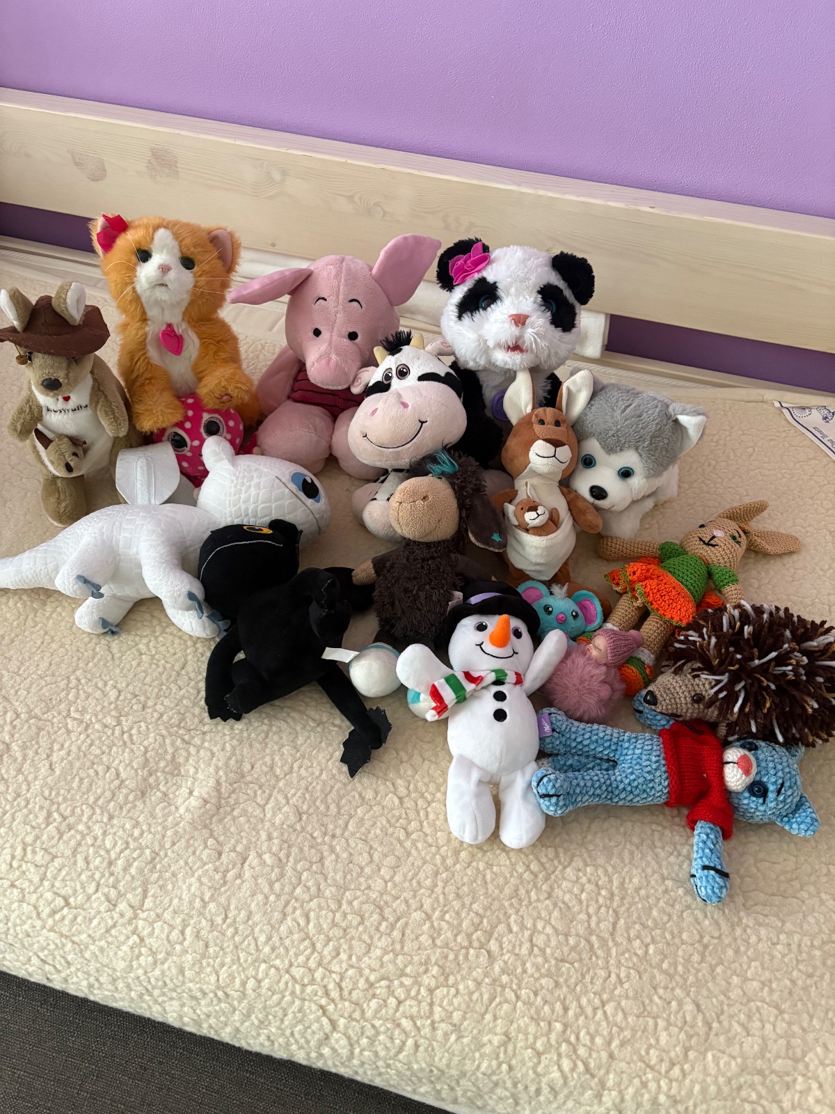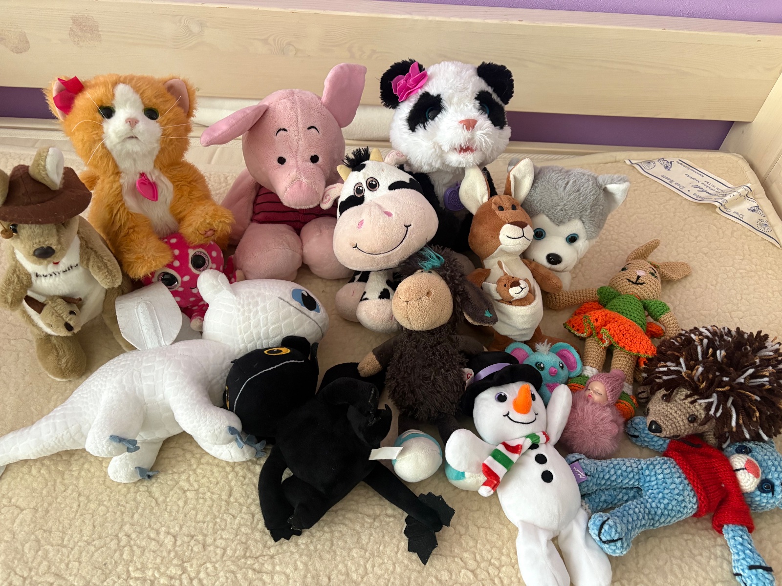 Ponúkam plyšové a vlnené zvieratká spolu 17 kusov. Mačka, panda a psík sú robotické na baterky. Všetko spolu len za 39 EUR.