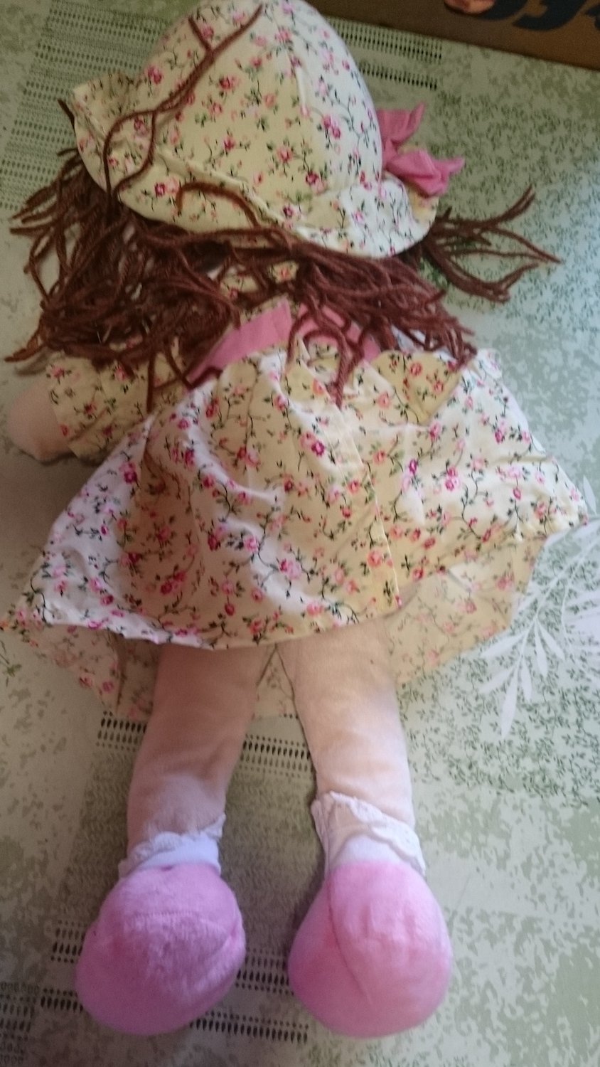 handrová bábika Asda s klobúčikom je pevne pripojený k telíčku, šaty sa dajú vyzliecť, vzadu zapínanie na suchý zips,
