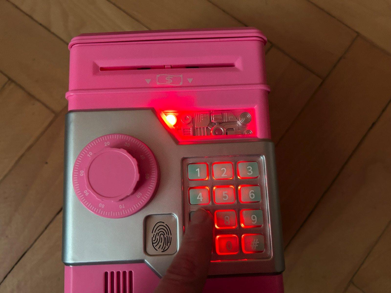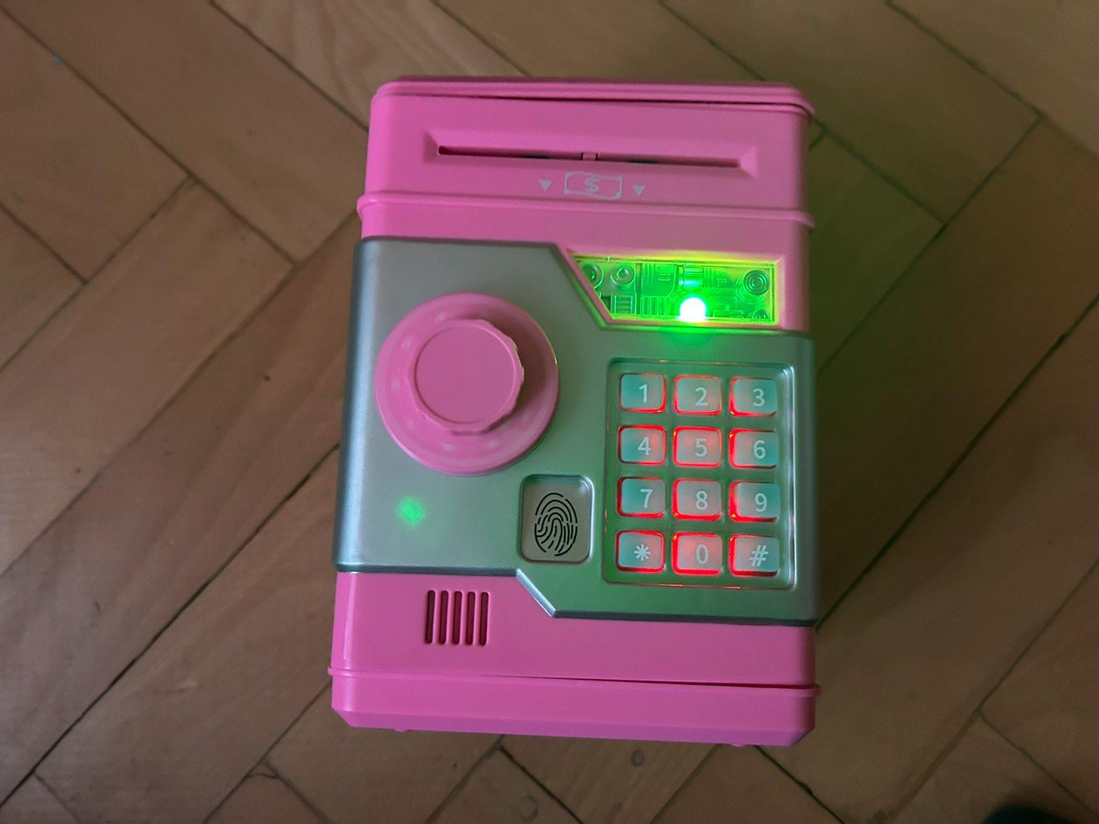 detský trezor na baterky, funkčný, len treba dokúpiť baterky
