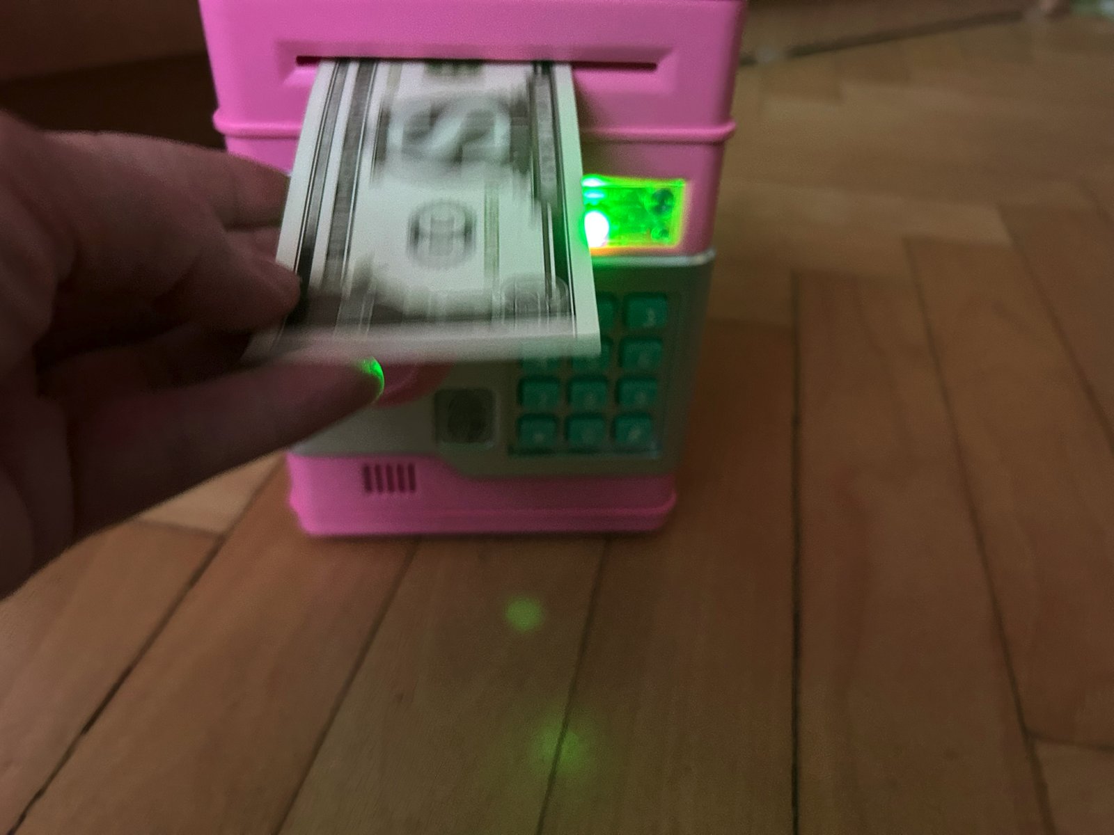 po vložení peňazí treba zadať kód, použiť otlačok prstu (imitácia) a trezor sa otvorí