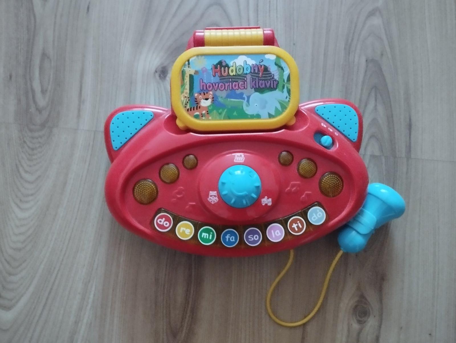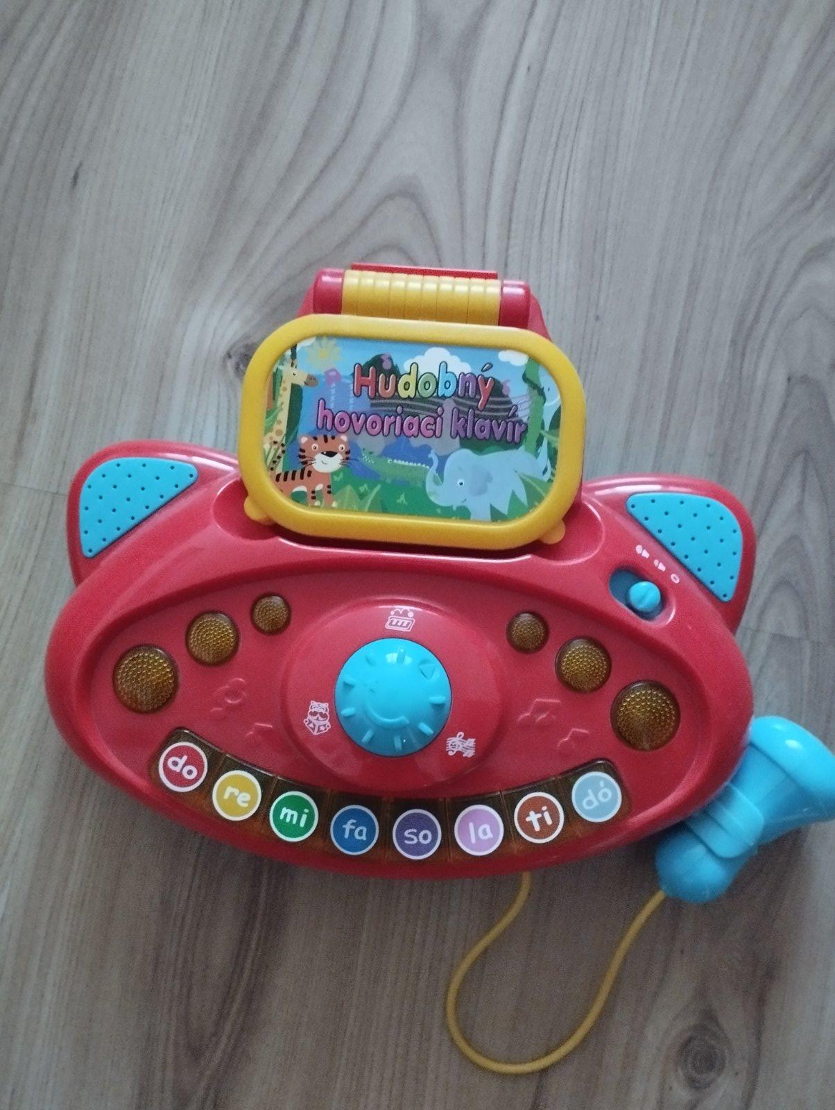 Klavir obsahuje aj klávesnicu, ktorá svieti a hra rôzne melódie, tesp. dieťa si melódiu vyberá samo.