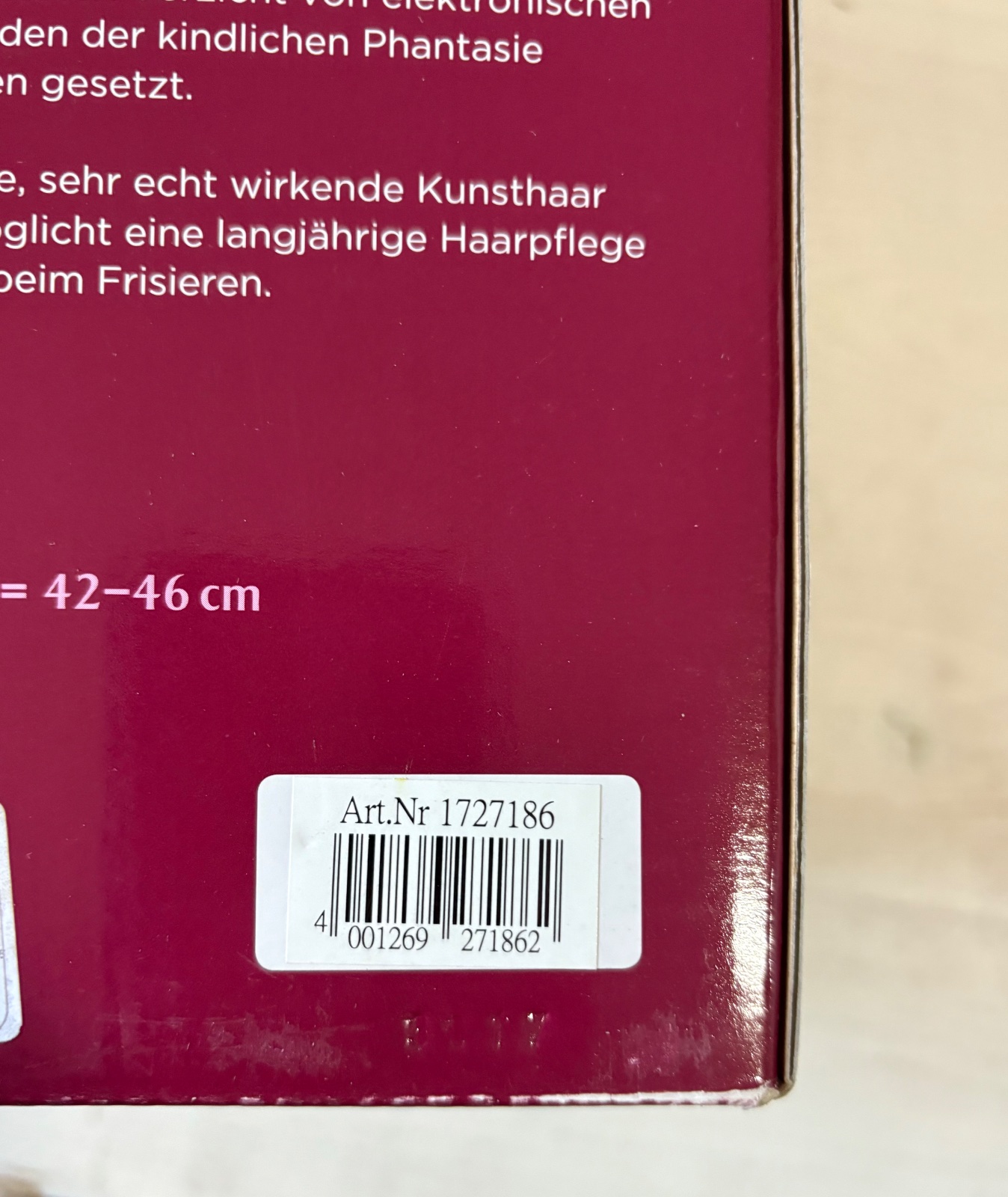 Vlasy bábiky vyzerajú klamlivo reálne a sú vyrobené z vysoko kvalitného materiálu. Vlasy sú všité do hlavy, vďaka čomu sú veľmi odolné. Dajú sa prať, česať a upravovať. Ak sa vlasy sušia fénom, vzdialenosť medzi fénom a bábikou by mala byť aspoň 20 cm, aby sa predišlo poškodeniu.