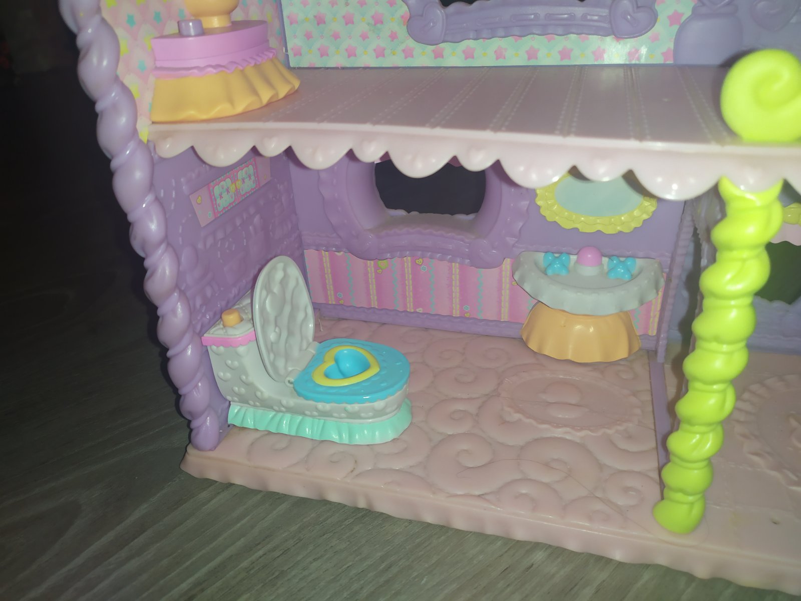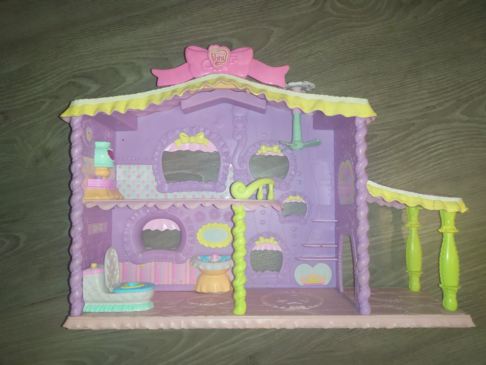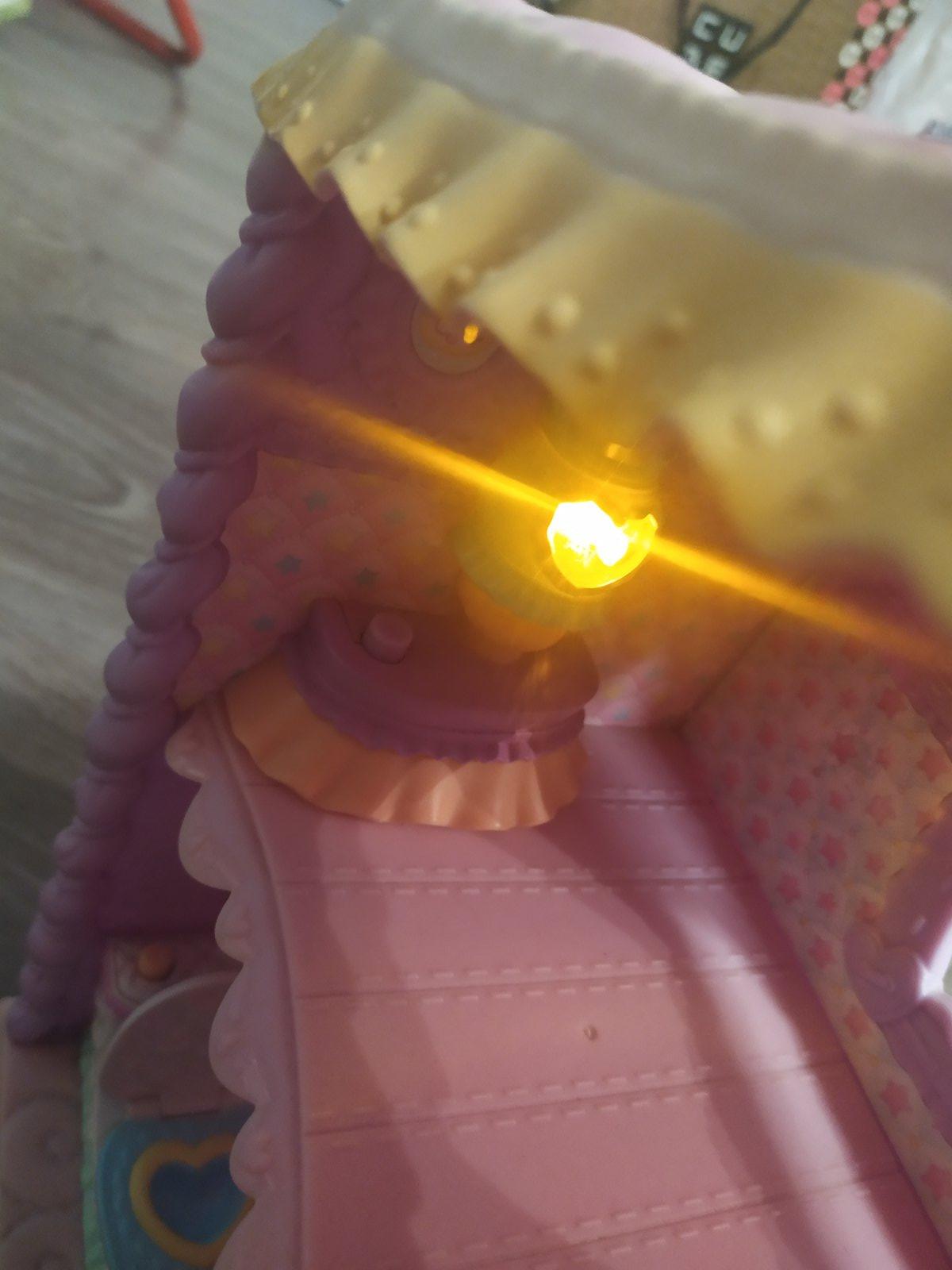 Krasny my little ponny dom pre poniky a ich babatka. Zachod vydava po zapnuti zvuky a nocna lampicka svieti a hra pesnicku z rozpravky v inom inzerate predavam a ponika mamicku s babatkom a kocikom ktora sa k domceku skvele hodi je z kvalitneho pevneho materialu nie ako ten lahky plast co Hasbro vyraba aktualne , takyto sa uz v obchodoch nepredava