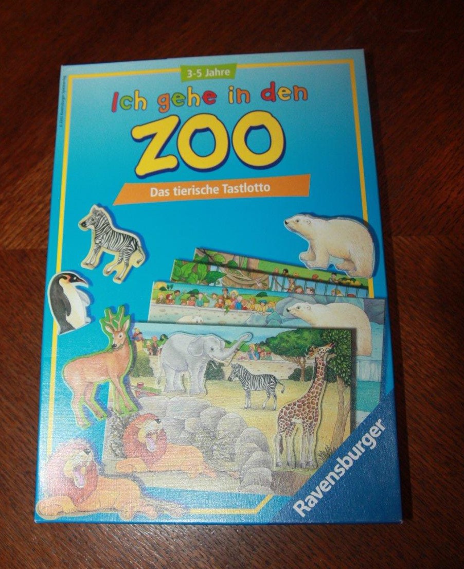 Spoločenská hra pre 1-4 hráčov od 3 rokov. Pravidlá v nemčine. Hraná, zachovalá.. Loto so zvieratkami (zvieratká sa vyberajú z vrecka a ukladajú sa na podložky ), hráč sa snaží vo vrecku nahmatať to svoje zvieratko .