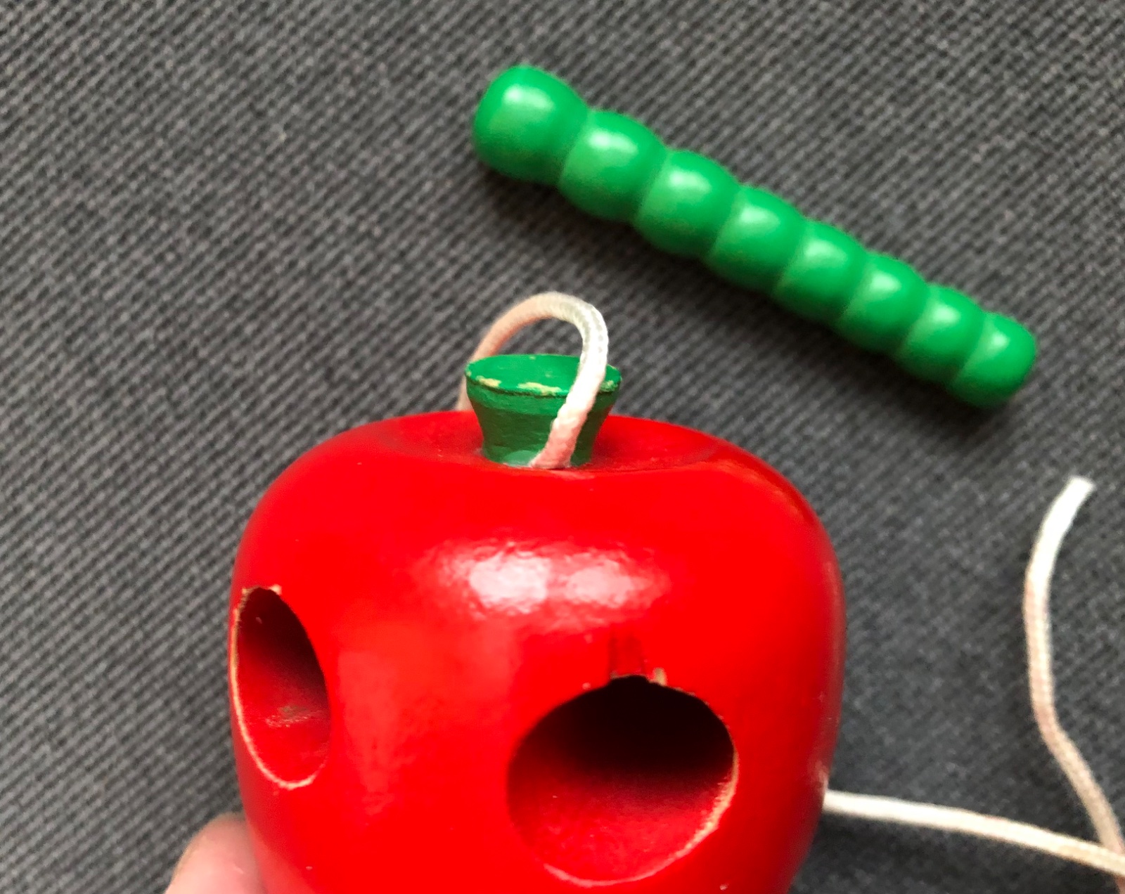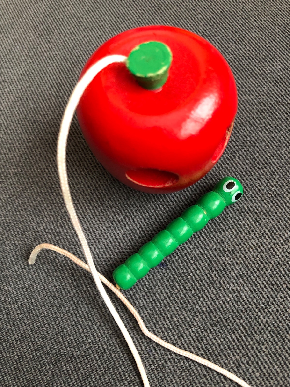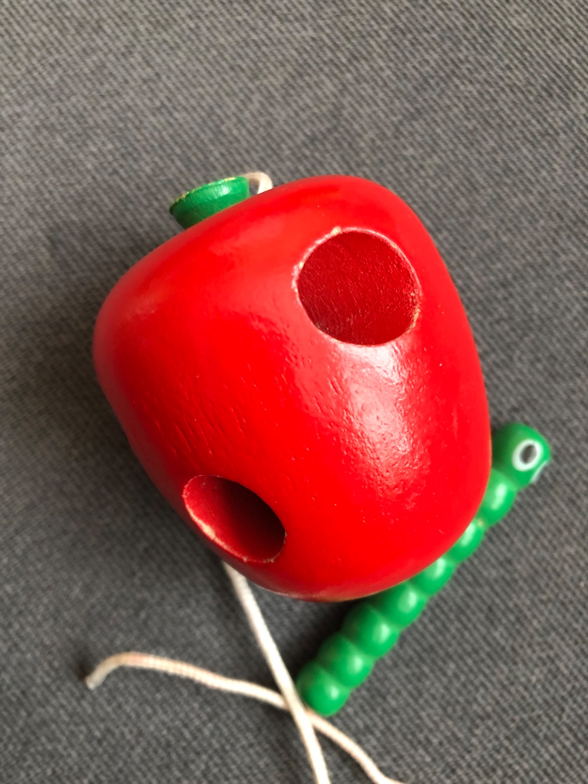 Bohužiaľ sa červík odtrhol 🙆♀️ dá sa dávať cez dierky aj bez šnúrky